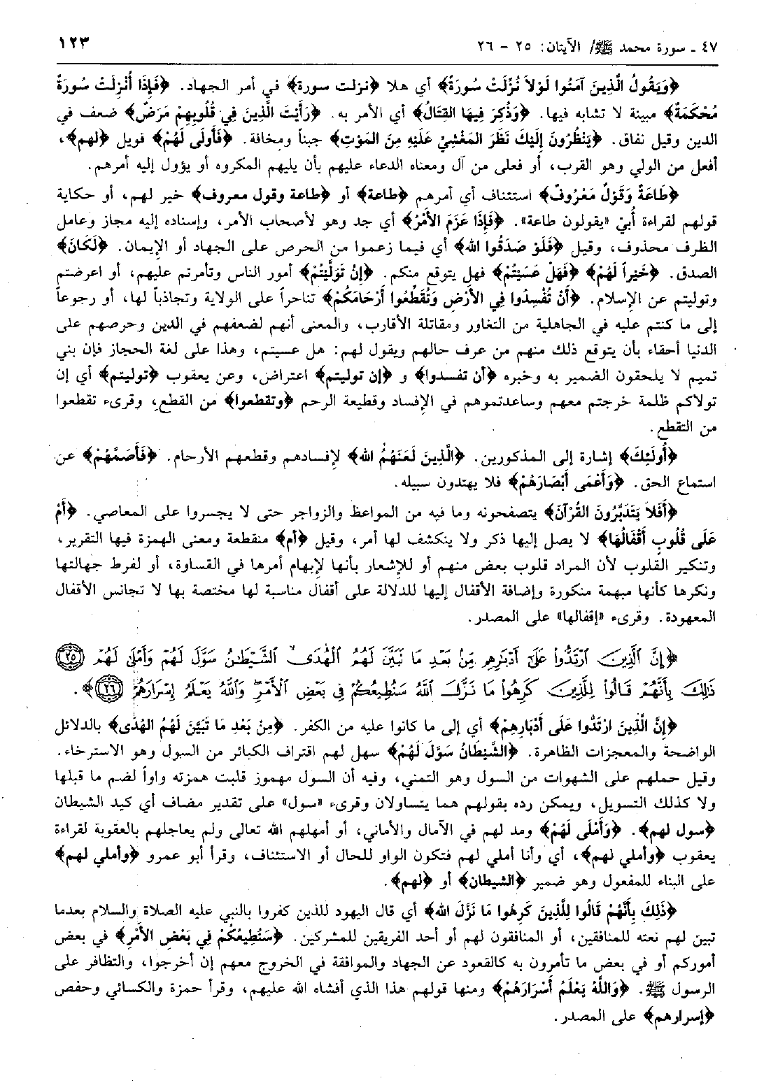 إِنَّ الَّذِينَ ارْتَدُّوا عَلى أَدْبارِهِمْ مِنْ بَعْدِ ما تَبَيَّنَ لَهُمُ الْهُدَى الشَّيْطانُ سَوَّلَ لَهُمْ وَأَمْلى لَهُمْ (25) ذلِكَ بِأَنَّهُمْ قالُوا لِلَّذِينَ كَرِهُوا مَا نَزَّلَ اللَّهُ سَنُطِيعُكُمْ فِي بَعْضِ الْأَمْرِ وَاللَّهُ يَعْلَمُ إِسْرارَهُمْ (26)