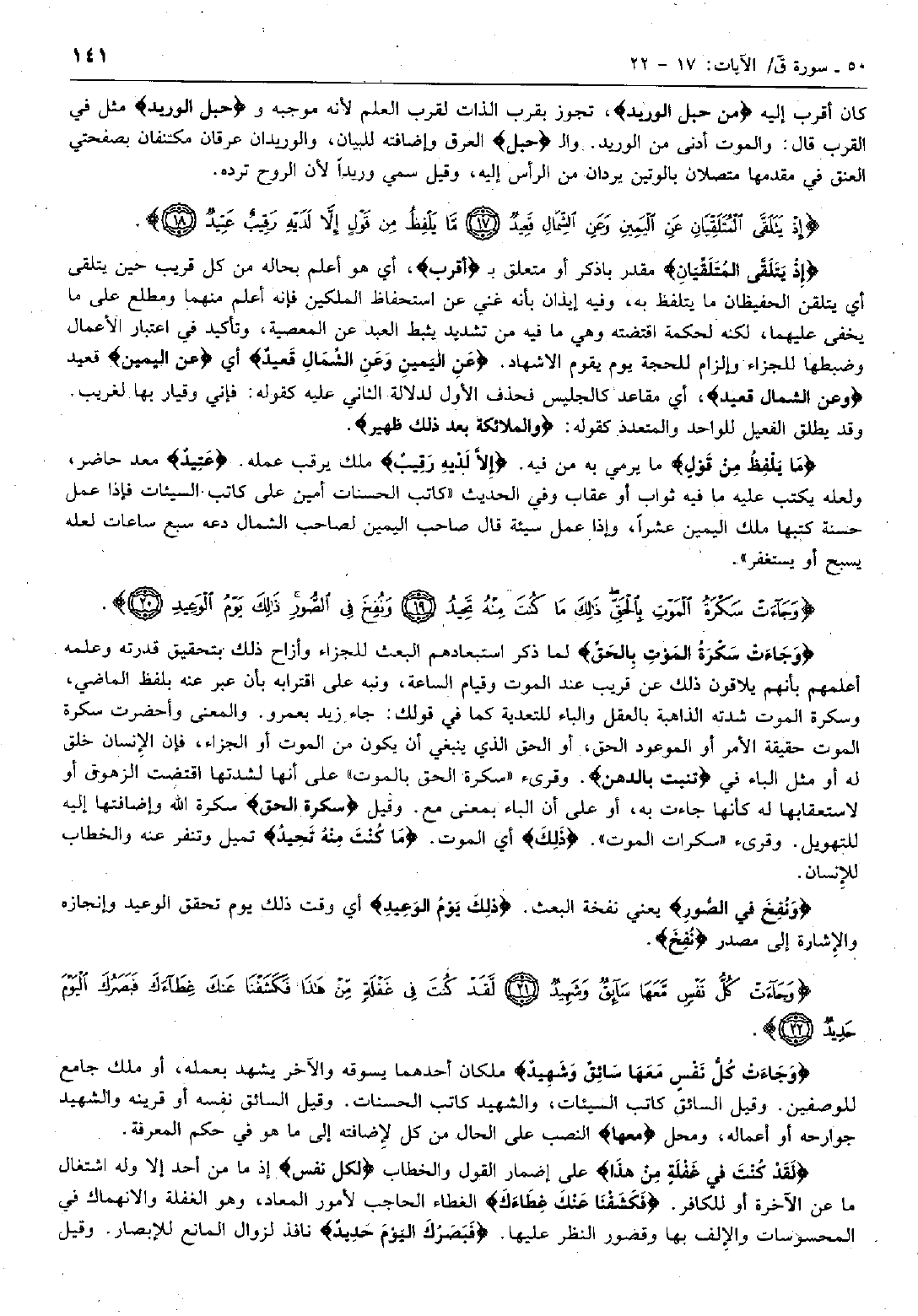 إِذْ يَتَلَقَّى الْمُتَلَقِّيانِ عَنِ الْيَمِينِ وَعَنِ الشِّمالِ قَعِيدٌ (17) مَّا يَلْفِظُ مِنْ قَوْلٍ إِلاَّ لَدَيْهِ رَقِيبٌ عَتِيدٌ (18)