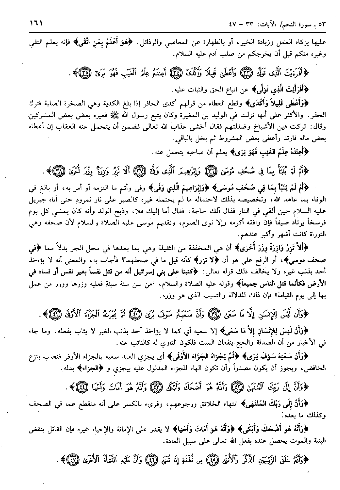 أَمْ لَمْ يُنَبَّأْ بِما فِي صُحُفِ مُوسى (36) وَإِبْراهِيمَ الَّذِي وَفَّى (37) أَلاَّ تَزِرُ وازِرَةٌ وِزْرَ أُخْرى (38)