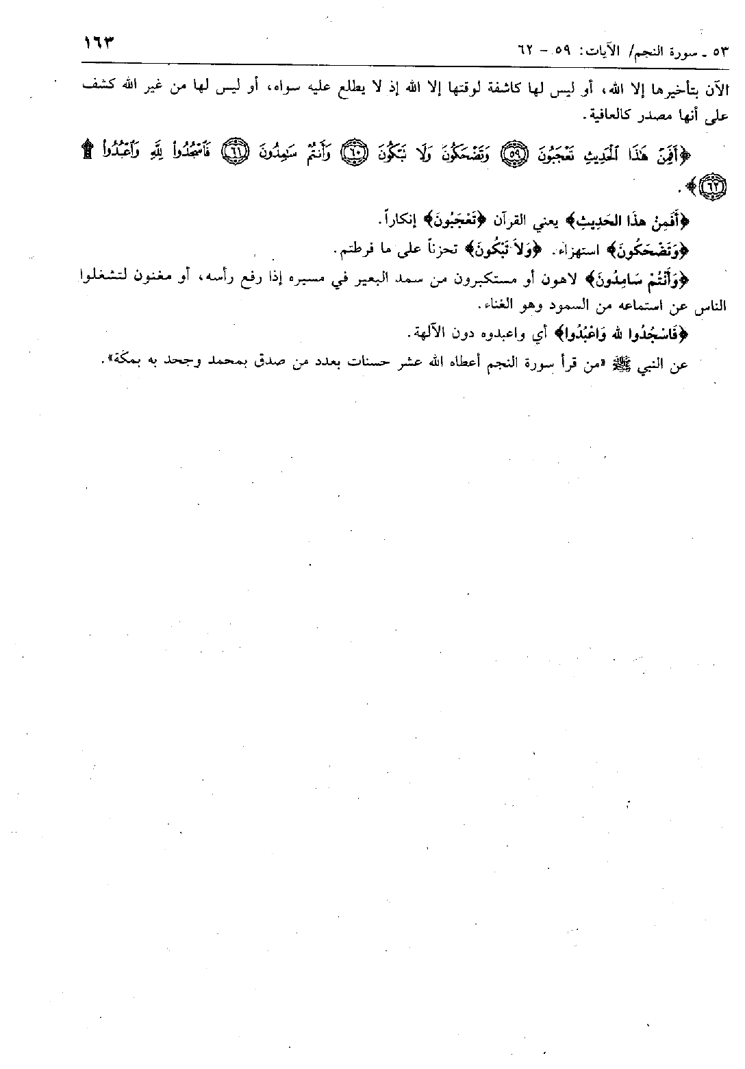 أَفَمِنْ هذَا الْحَدِيثِ تَعْجَبُونَ (59) وَتَضْحَكُونَ وَلا تَبْكُونَ (60) وَأَنْتُمْ سامِدُونَ (61) فَاسْجُدُوا لِلَّهِ وَاعْبُدُوا (62)