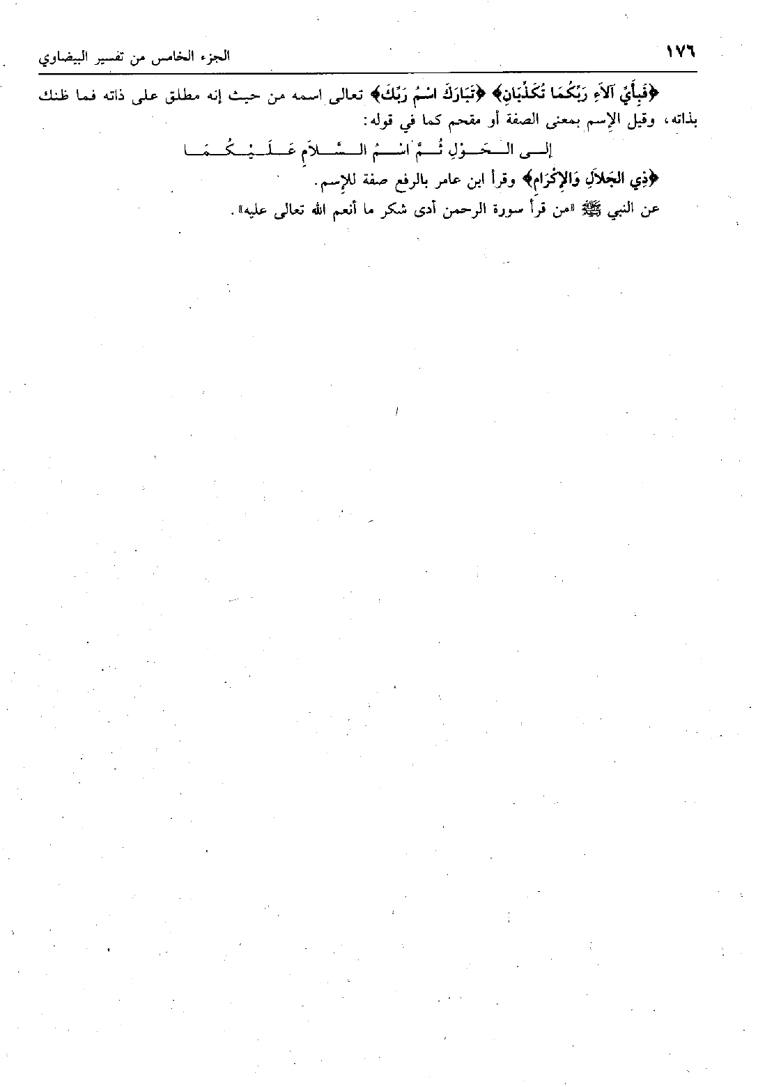 فَبِأَيِّ آلاءِ رَبِّكُما تُكَذِّبانِ تَبارَكَ اسْمُ رَبِّكَ تعالى اسمه من حيث إنه مطلق على ذاته فما ظنك بذاته، وقيل الإِسم بمعنى الصفة أو مقحم كما في قوله: