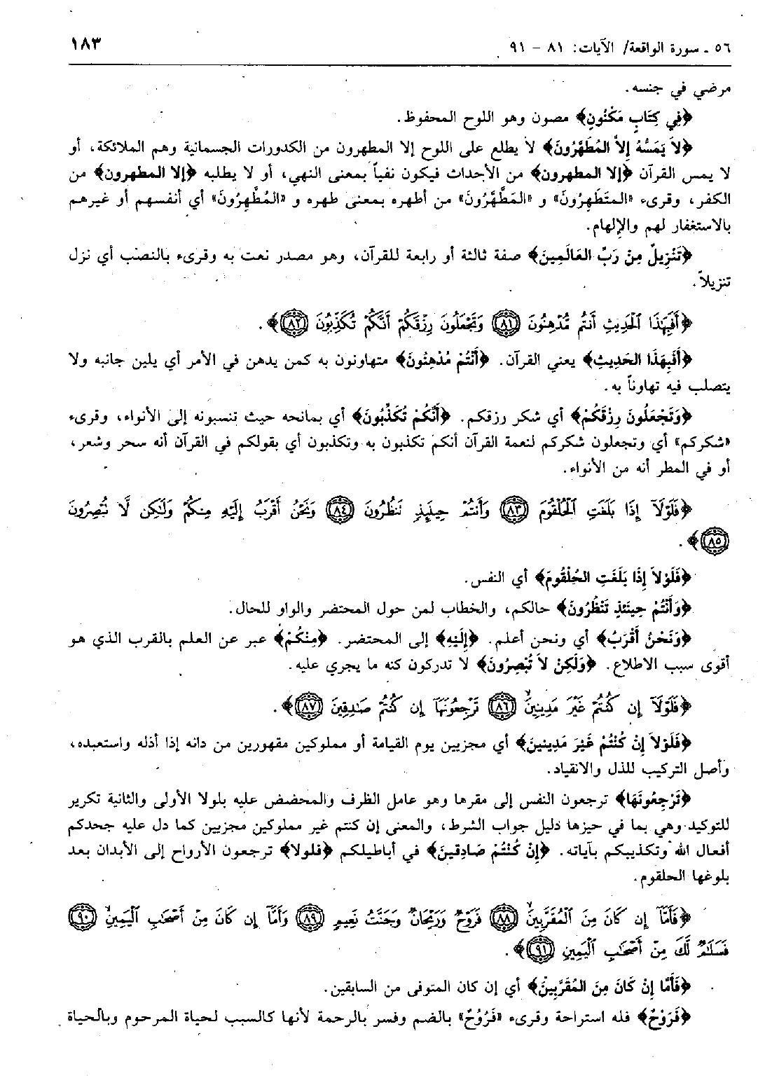 فَلَوْلا إِذا بَلَغَتِ الْحُلْقُومَ (83) وَأَنْتُمْ حِينَئِذٍ تَنْظُرُونَ (84) وَنَحْنُ أَقْرَبُ إِلَيْهِ مِنْكُمْ وَلكِنْ لا تُبْصِرُونَ (85)