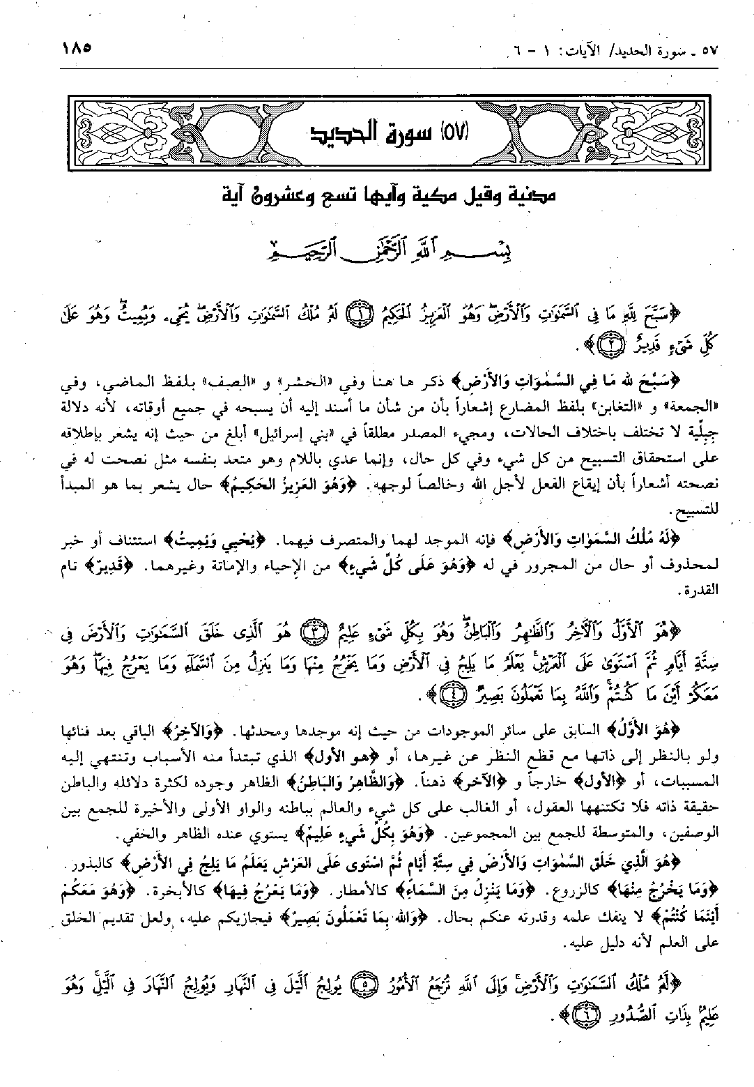 سَبَّحَ لِلَّهِ مَا فِي السَّماواتِ وَالْأَرْضِ وَهُوَ الْعَزِيزُ الْحَكِيمُ (1) لَهُ مُلْكُ السَّماواتِ وَالْأَرْضِ يُحْيِي وَيُمِيتُ وَهُوَ عَلى كُلِّ شَيْءٍ قَدِيرٌ (2)