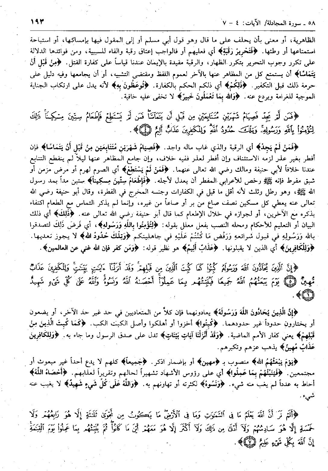 فَمَنْ لَمْ يَجِدْ فَصِيامُ شَهْرَيْنِ مُتَتابِعَيْنِ مِنْ قَبْلِ أَنْ يَتَمَاسَّا فَمَنْ لَمْ يَسْتَطِعْ فَإِطْعامُ سِتِّينَ مِسْكِيناً ذلِكَ لِتُؤْمِنُوا بِاللَّهِ وَرَسُولِهِ وَتِلْكَ حُدُودُ اللَّهِ وَلِلْكافِرِينَ عَذابٌ أَلِيمٌ (4)