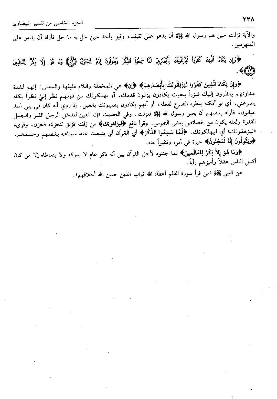 وَإِنْ يَكادُ الَّذِينَ كَفَرُوا لَيُزْلِقُونَكَ بِأَبْصارِهِمْ لَمَّا سَمِعُوا الذِّكْرَ وَيَقُولُونَ إِنَّهُ لَمَجْنُونٌ (51) وَما هُوَ إِلاَّ ذِكْرٌ لِلْعالَمِينَ (52)