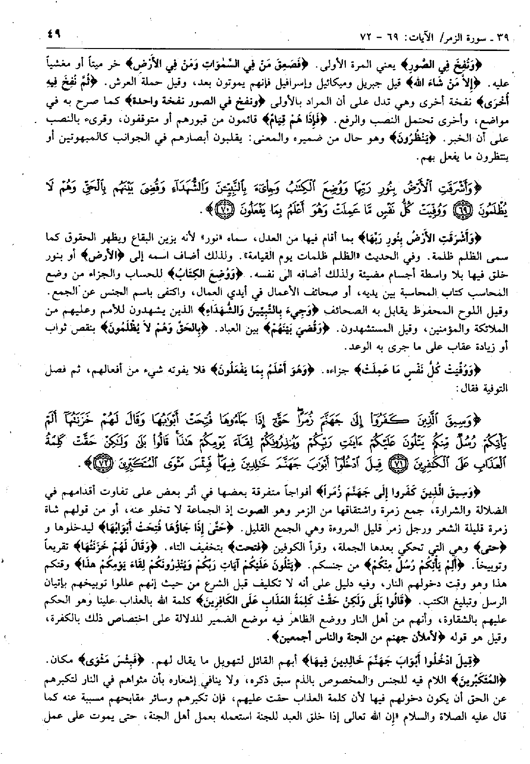 وَأَشْرَقَتِ الْأَرْضُ بِنُورِ رَبِّها وَوُضِعَ الْكِتابُ وَجِيءَ بِالنَّبِيِّينَ وَالشُّهَداءِ وَقُضِيَ بَيْنَهُمْ بِالْحَقِّ وَهُمْ لاَ يُظْلَمُونَ (69) وَوُفِّيَتْ كُلُّ نَفْسٍ مَّا عَمِلَتْ وَهُوَ أَعْلَمُ بِما يَفْعَلُونَ (70)