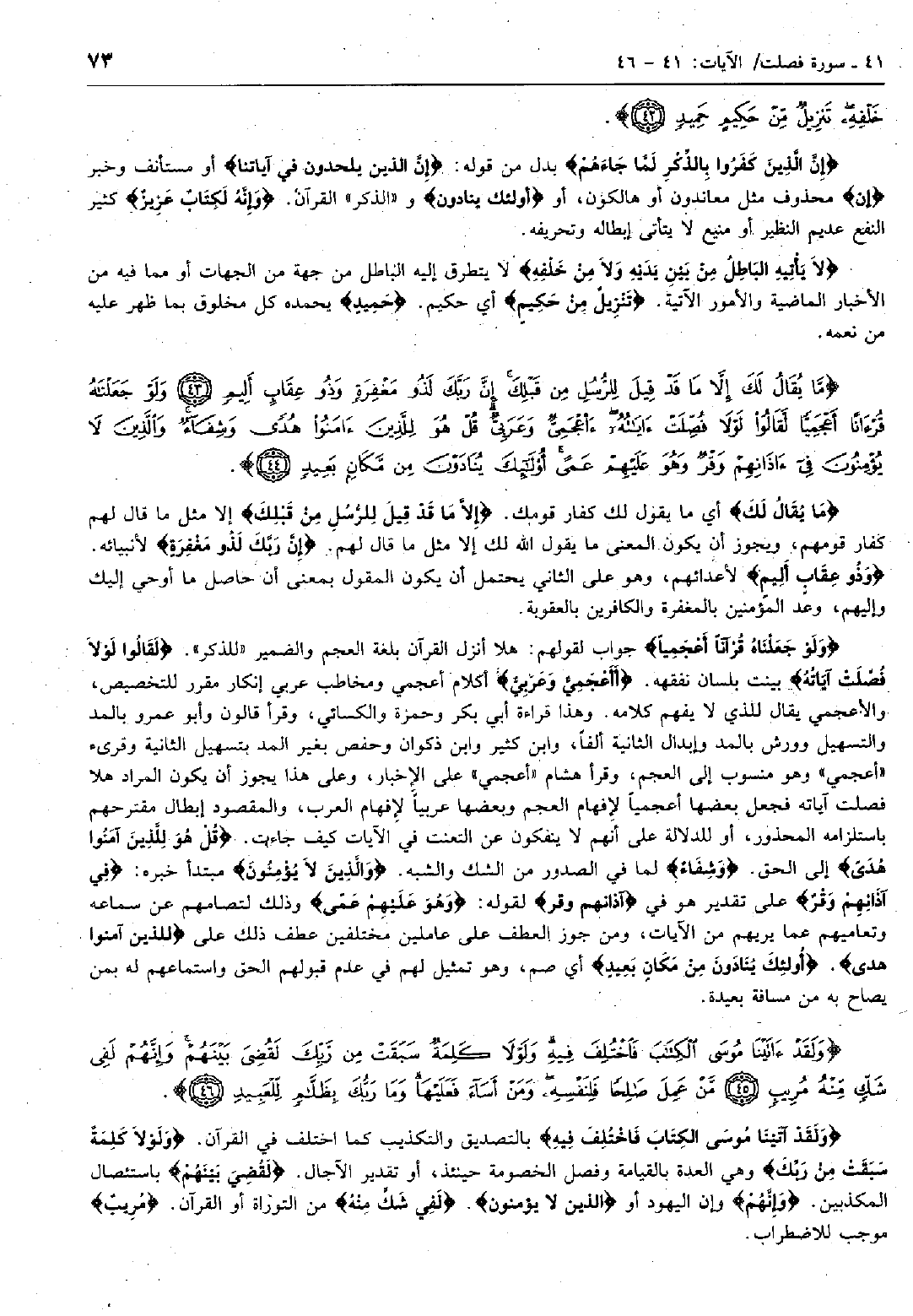 وَلَقَدْ آتَيْنا مُوسَى الْكِتابَ فَاخْتُلِفَ فِيهِ وَلَوْلا كَلِمَةٌ سَبَقَتْ مِنْ رَبِّكَ لَقُضِيَ بَيْنَهُمْ وَإِنَّهُمْ لَفِي شَكٍّ مِنْهُ مُرِيبٍ (45) مَنْ عَمِلَ صالِحاً فَلِنَفْسِهِ وَمَنْ أَساءَ فَعَلَيْها وَما رَبُّكَ بِظَلاَّمٍ لِلْعَبِيدِ (46)