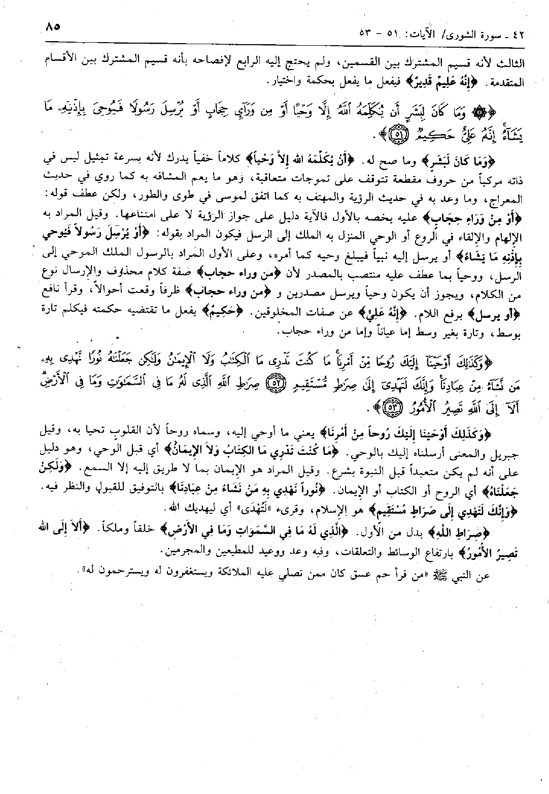 وَما كانَ لِبَشَرٍ أَنْ يُكَلِّمَهُ اللَّهُ إِلاَّ وَحْياً أَوْ مِنْ وَراءِ حِجابٍ أَوْ يُرْسِلَ رَسُولاً فَيُوحِيَ بِإِذْنِهِ ما يَشاءُ إِنَّهُ عَلِيٌّ حَكِيمٌ (51)