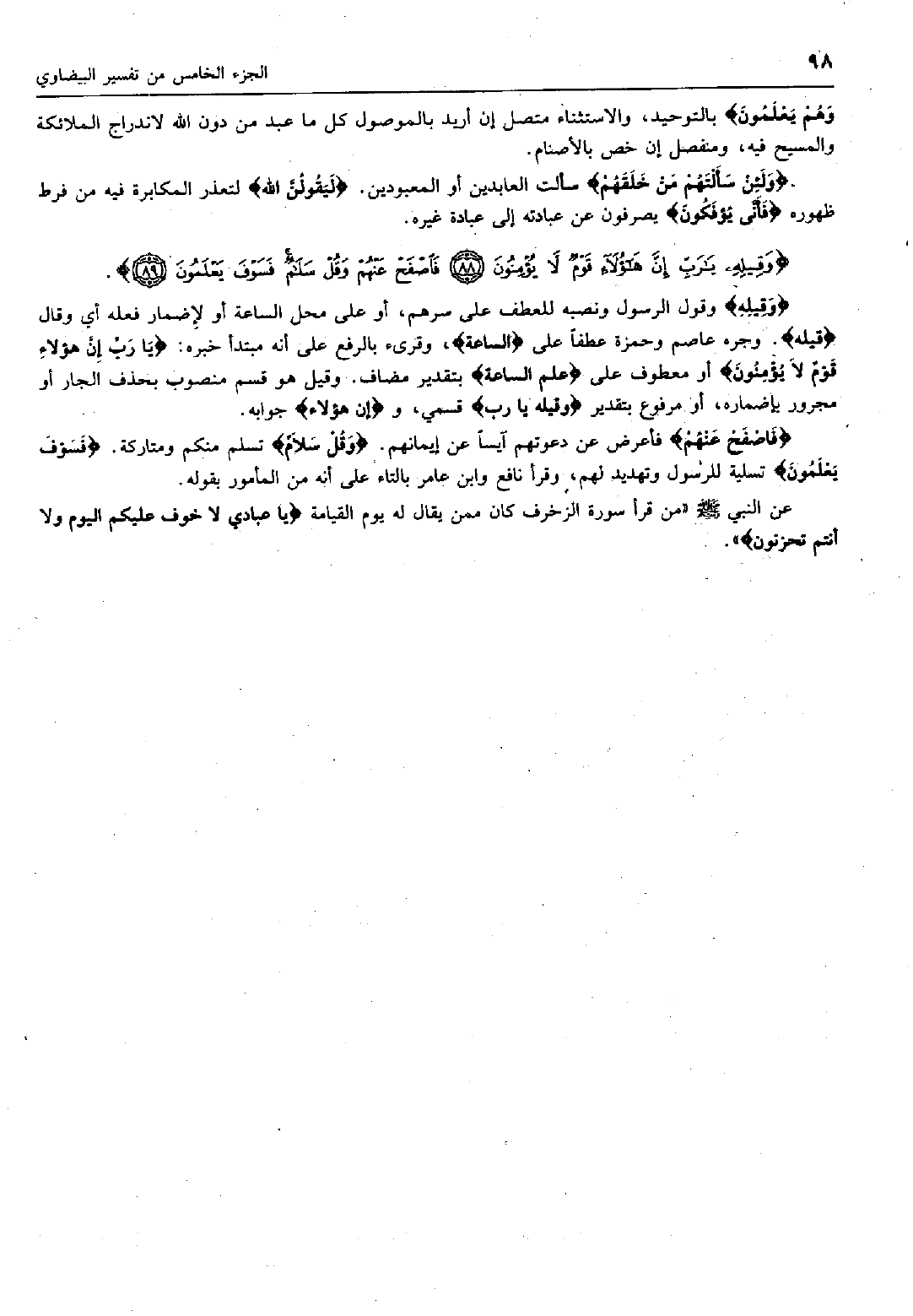 وَقِيلِهِ يا رَبِّ إِنَّ هؤُلاءِ قَوْمٌ لاَّ يُؤْمِنُونَ (88) فَاصْفَحْ عَنْهُمْ وَقُلْ سَلامٌ فَسَوْفَ يَعْلَمُونَ (89)