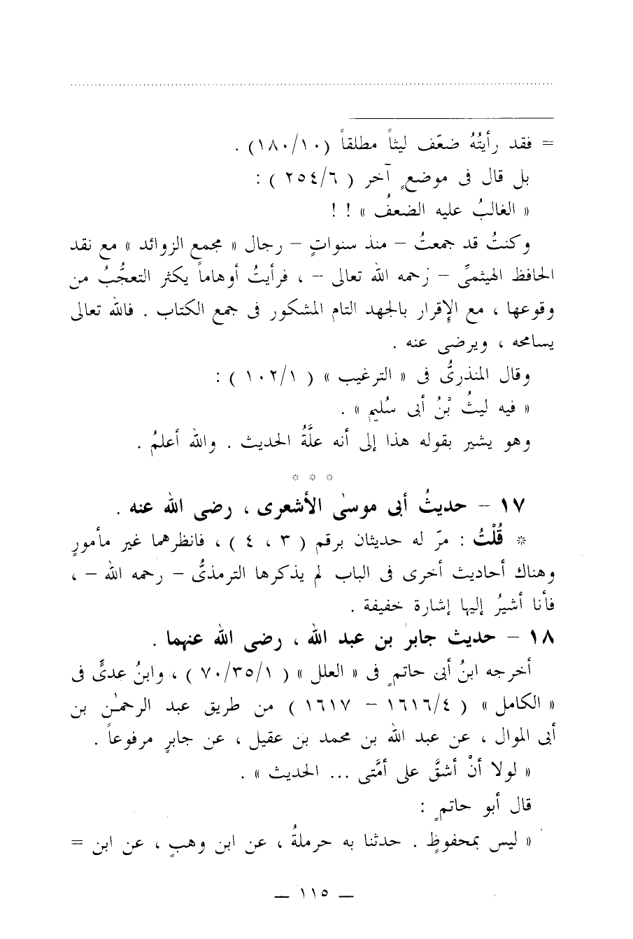 = فقد رأيتُهُ ضعّف ليثًا مطلقًا (10/ 180).