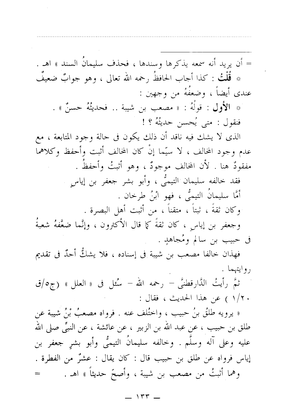 * الأول: قولُهُ: "مصعب بن شيبة .. فحديثُهُ حسنٌ".