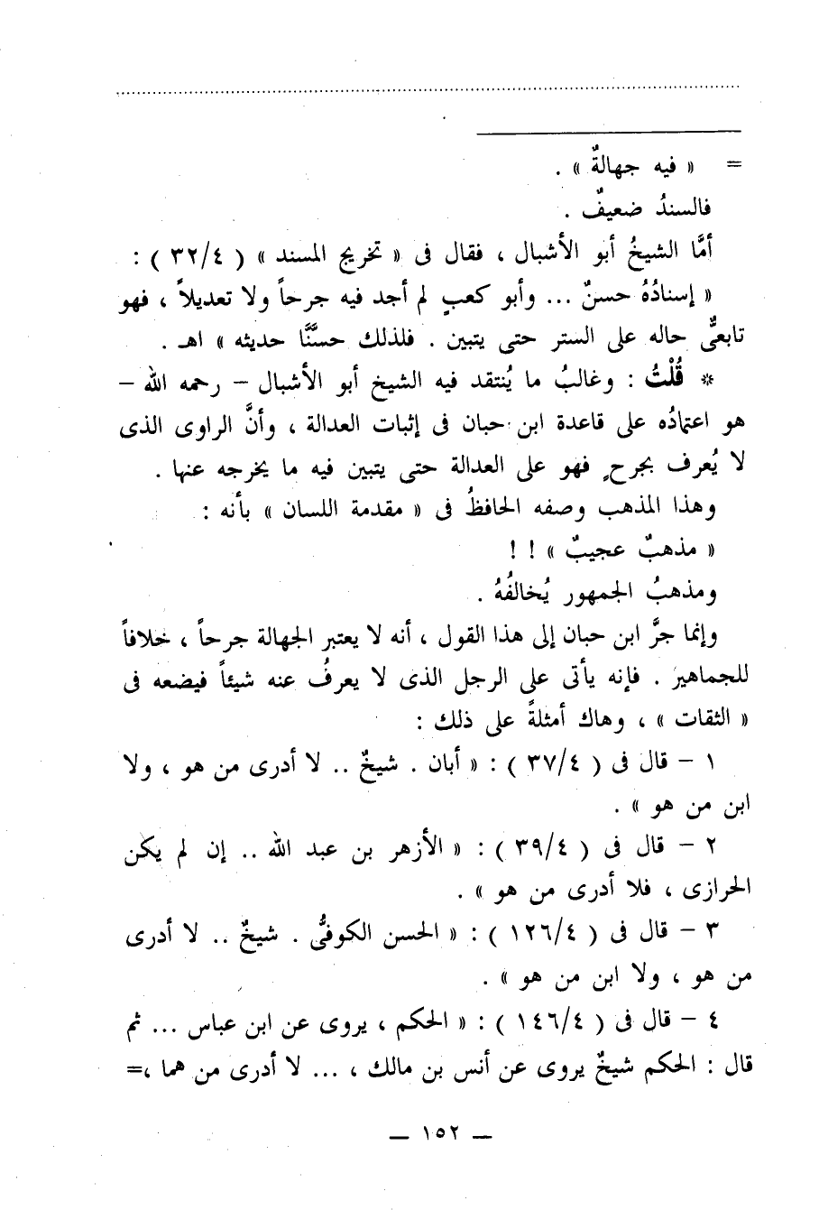 وإنما جرَّ ابن حبان إلى هذا القول، أنه لا يعتبر الجهالة جرحًا، خلافًا للجماهير. فإنه يأتي على الرجل الذي لا يعرفُ عنه شيئًا فيضعه في "الثقات"، وهاك أمثلةً على ذلك: