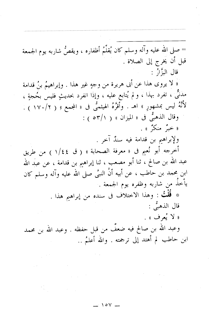 = صلى الله عليه وآله وسلم كان يُقلِّمُ أظفاره، ويقصُّ شاربه يوم الجمعة قبل أن يخرج إلى الصلاة.