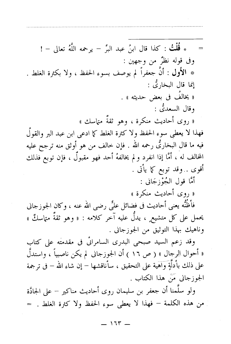 * الأول: أنَّ جعفرًا لم يوصف بسوء الحفظ، ولا بكثرة الغلط.