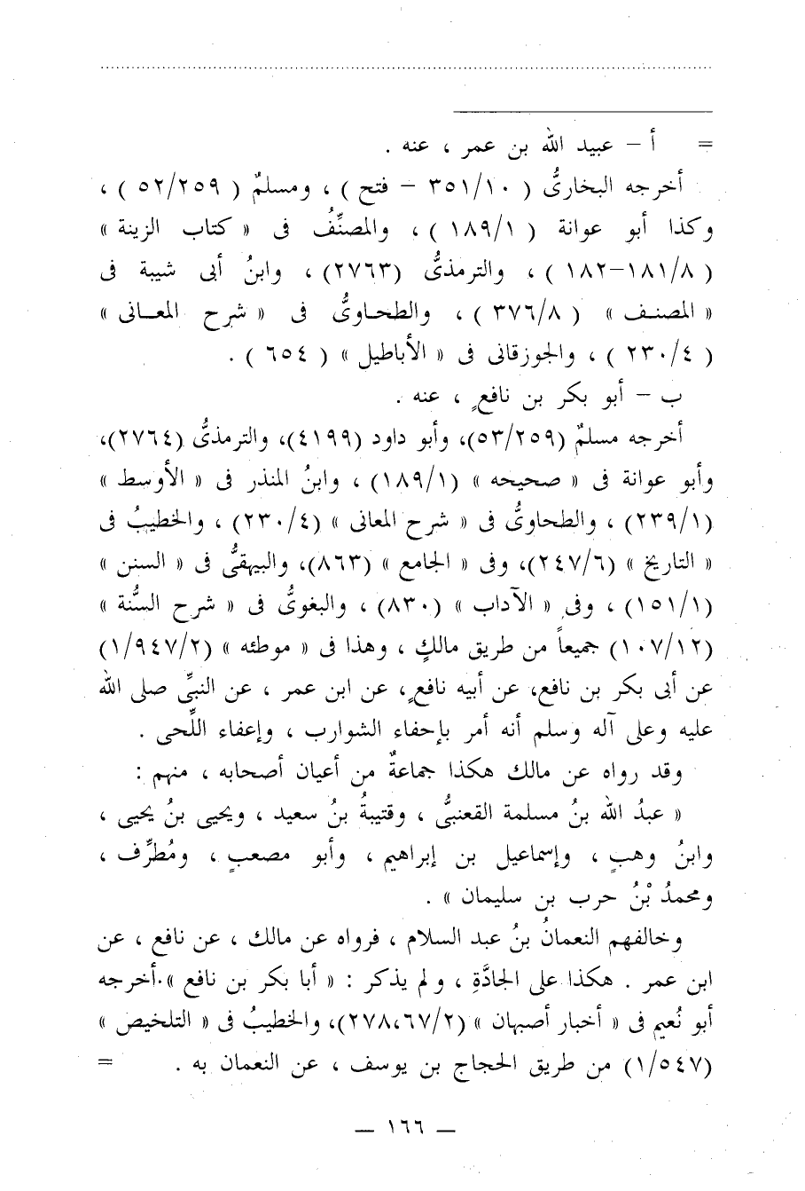 وخالفهم النعمان بنُ عبد السلام، فرواه عن مالك، عن نافع، عن ابن عمر. هكذا على الجادَّةِ، ولم يذكر: "أبا بكر بن نافع". أخرجه أبو نُعيم في "أخبار أصبهان" (2/ 278،67)، والخطيبُ في "التلخيص" (547/ 1) من طريق الحجاج بن يوسف، عن النعمان به. =