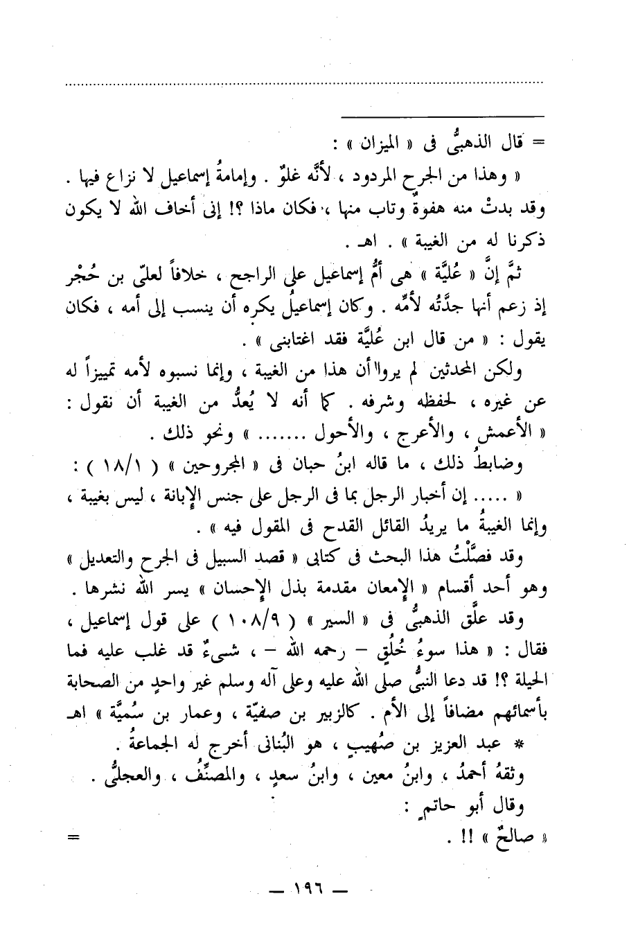 وقد فصَّلْتُ هذا البحث في كتابي "قصد السبيل في الجرح والتعديل" وهو أحد أقسام "الإمعان مقدمة بذل الإحسان" يسر الله نشرها.