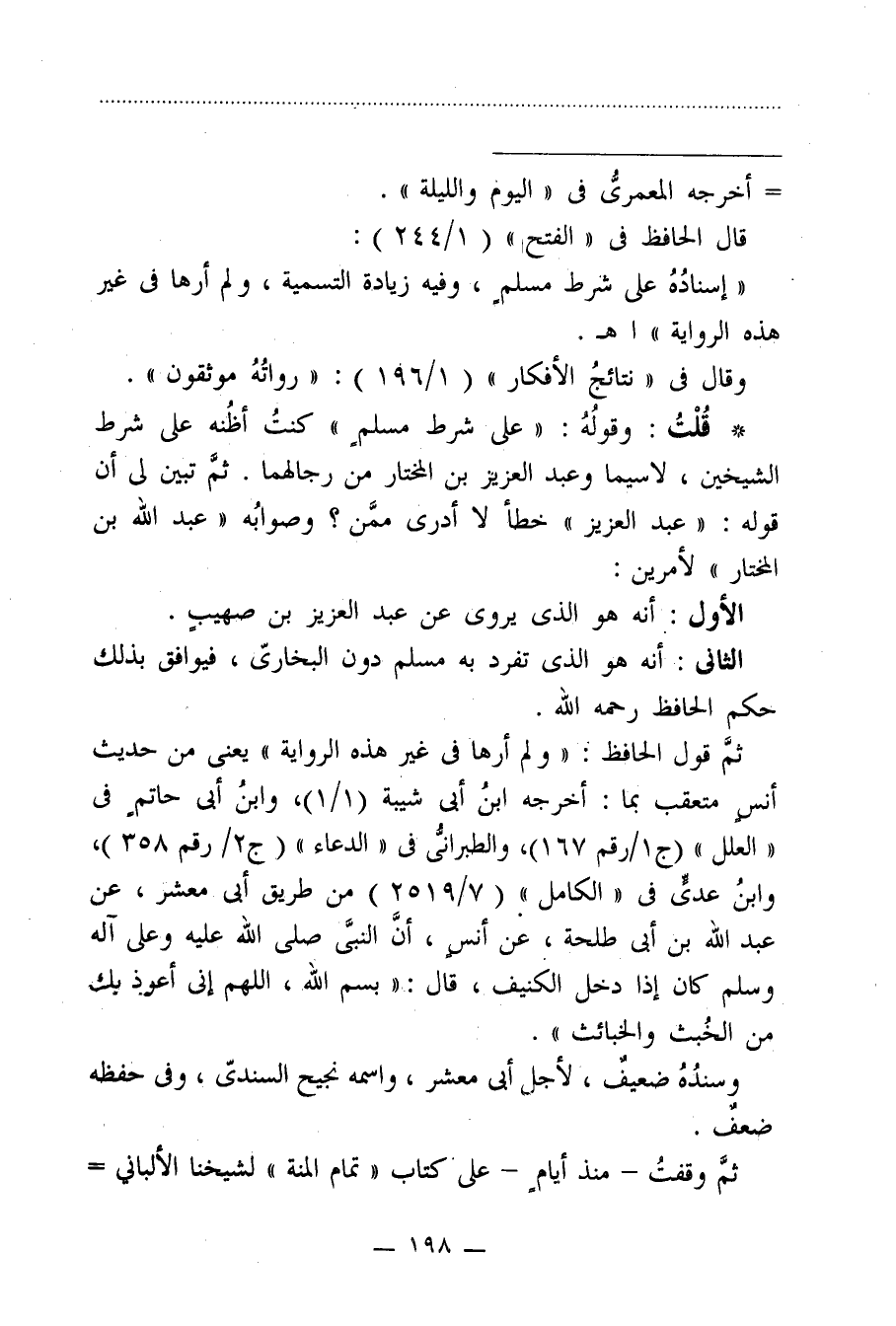 ثمَّ وقفتُ -منذ أيامٍ- على كتاب "تمام المنة" لشيخنا الألباني =