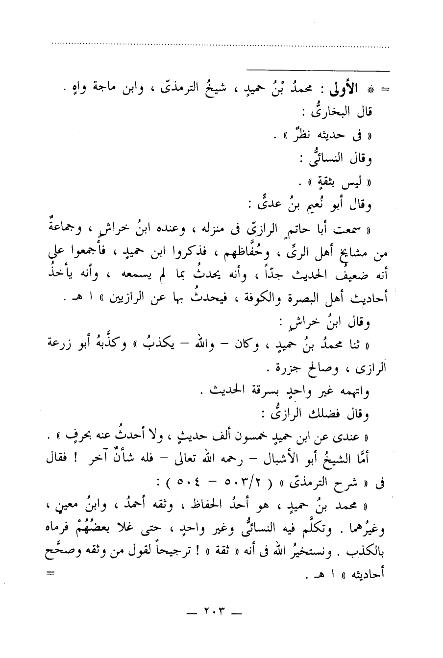 = * الأولى: محمدُ بْنُ حميدٍ، شيخُ الترمذيّ، وابن ماجة واهٍ.