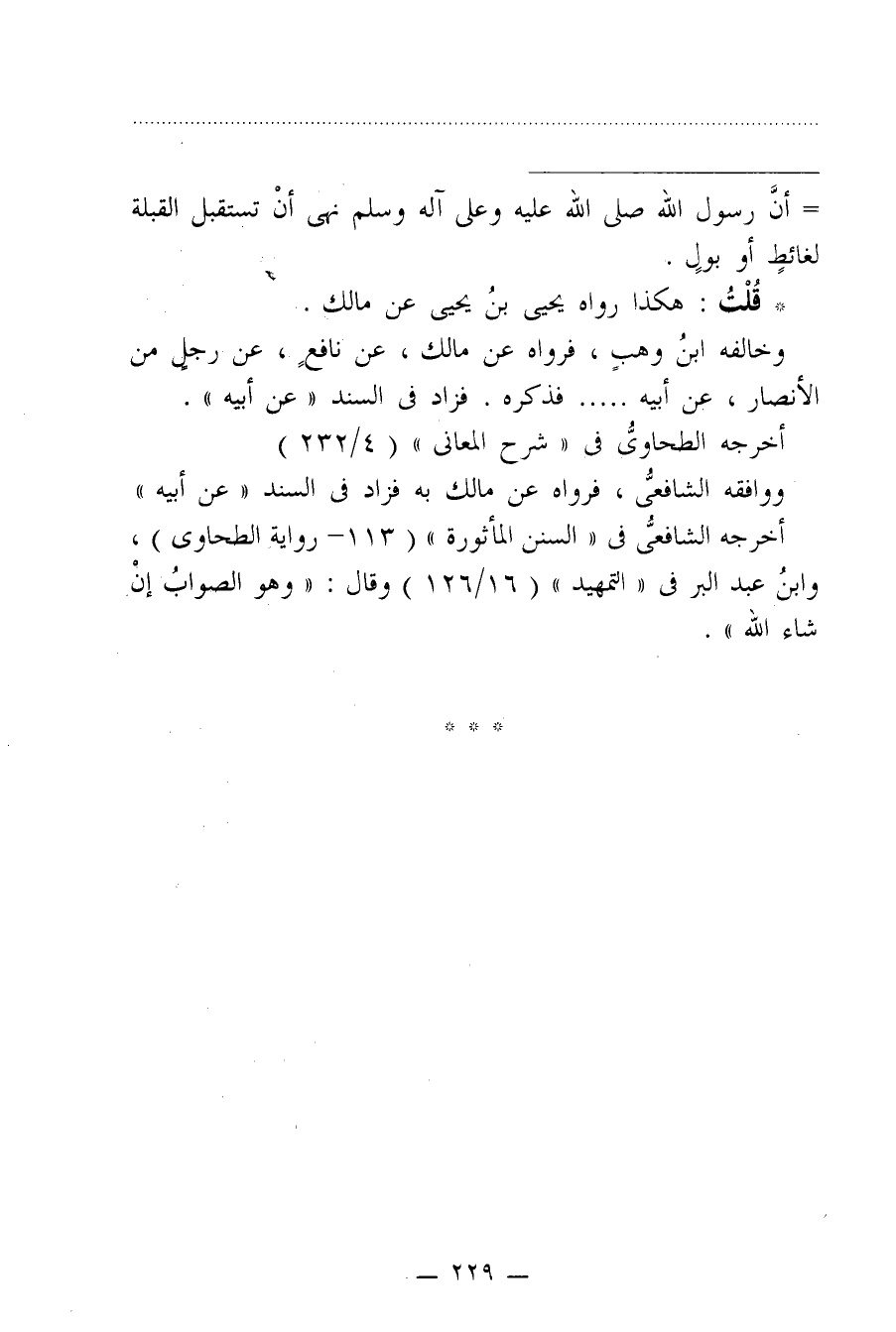 = أنَّ رسول الله صلى الله عليه وعلى آله وسلم نهى أنْ تستقبل القبلة لغائطٍ أو بولٍ.