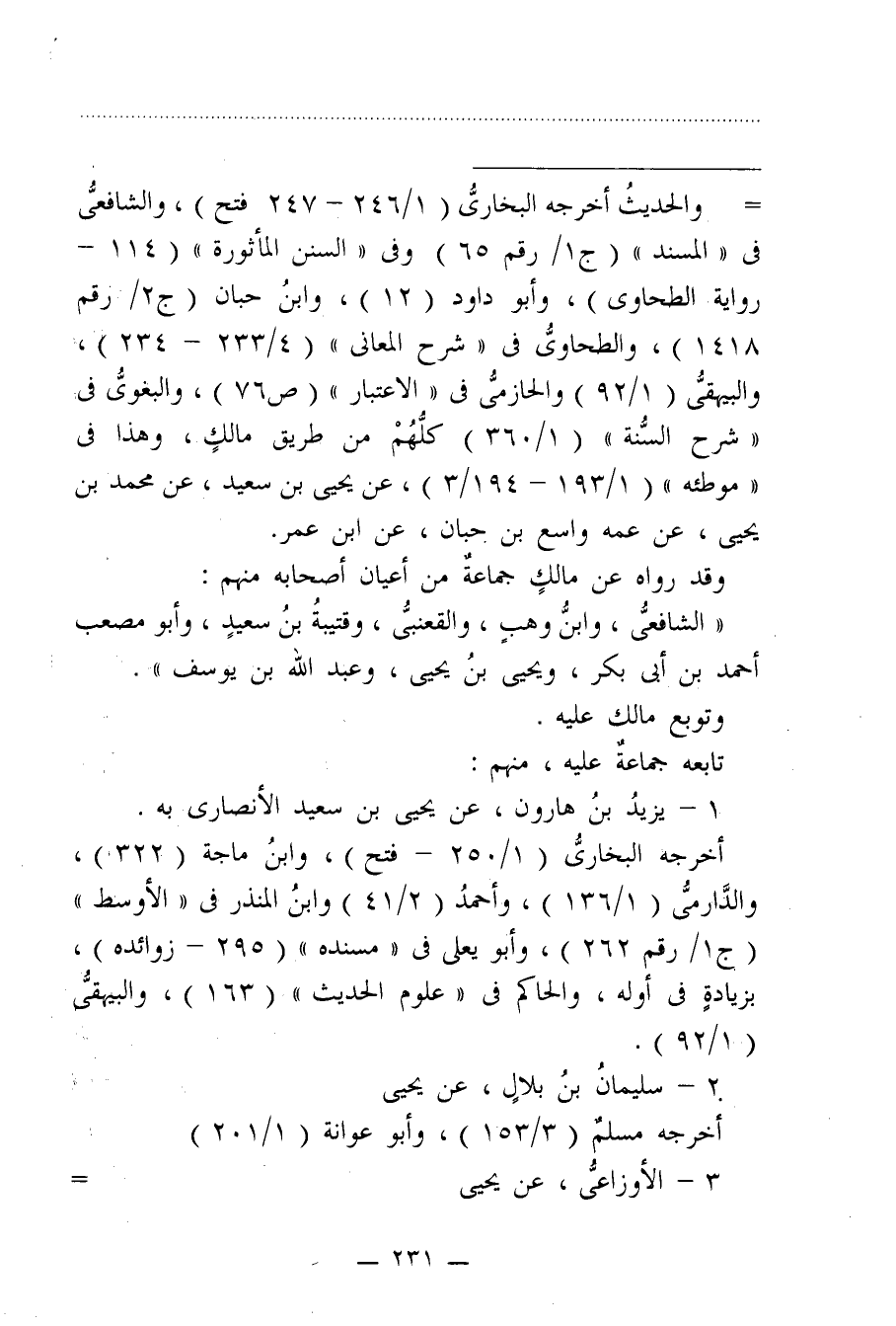 = والحديثُ أخرجه البخاريُّ (1/ 246 - 247 فتح)، والشافعيُّ في "السند" (ج1/ رقم 56) وفي "السنن المأثورة" (114 - رواية الطحاوي)، وأبو داود (12)، وابنُ حبان (ج2/ رقم 1418)، والطحاويُّ في "شرح المعاني" (4/ 233 - 234)، والبيهقيُّ (1/ 92) والحازميُّ في "الاعتبار" (ص 76)، والبغويُّ في "شرح السُّنة" (1/ 360) كلُّهُمْ من طريق مالكٍ، وهذا في "موطئه" (1/ 193 - 194/ 3)، عن يحيى بن سعيد، عن محمد بن يحيى، عن عمه واسع بن حبان، عن ابن عمر.