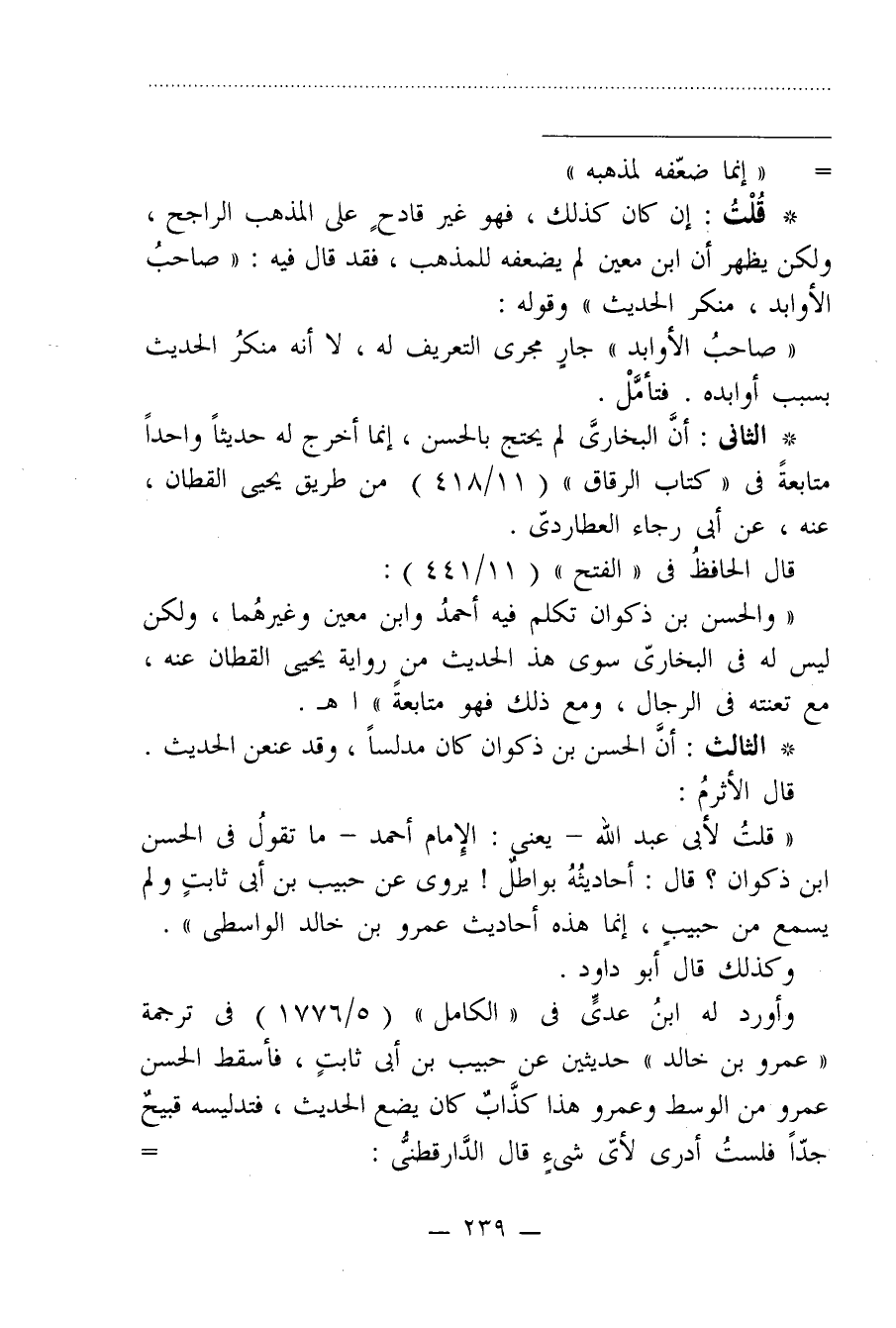 * قُلْتُ: إن كان كذلك، فهو غير قادحٍ على المذهب الراجح، ولكن يظهر أن ابن معين لم يضعفه للمذهب، فقد قال فيه: "صاحبُ الأوابد، منكر الحديث" وقوله: