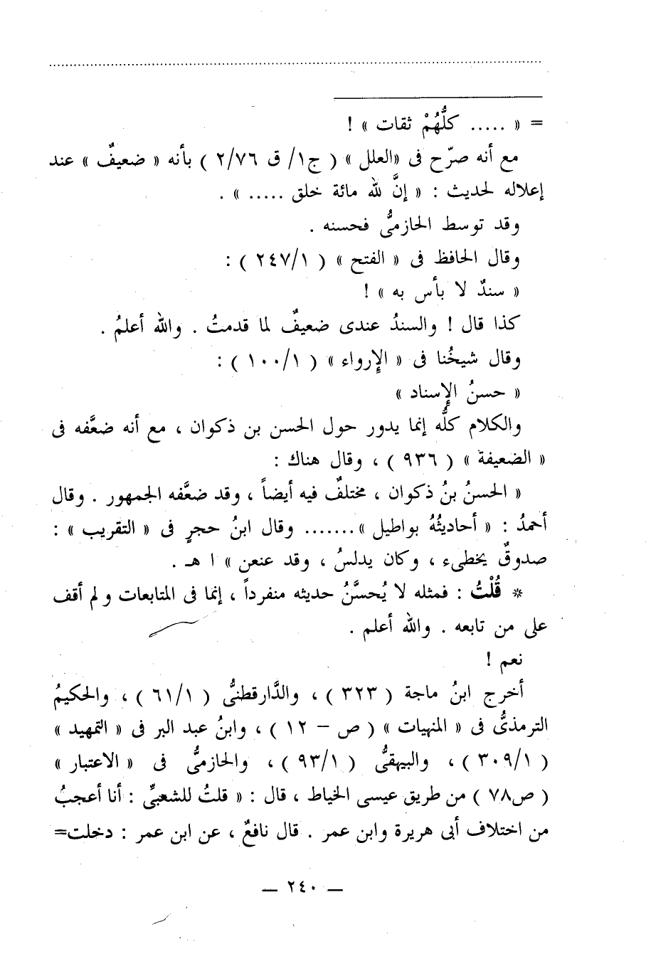 مع أنه صرّح في "العلل" (ج 1/ق 76/ 2) بأنه "ضعيفٌ" عند إعلاله لحديث: "إنَّ لله مائة خلق ..... ".