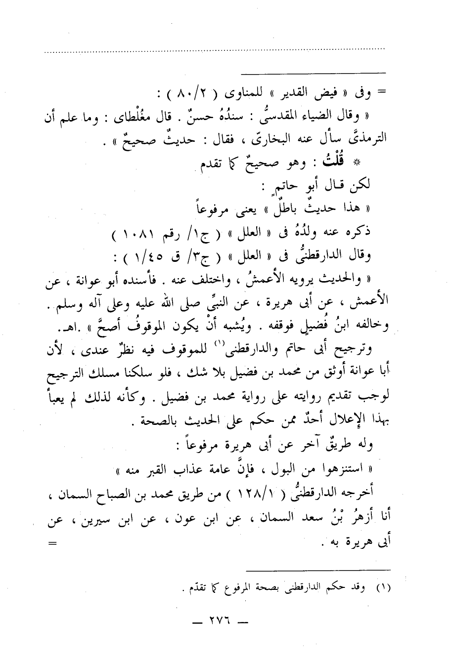 (¬1) وقد حكم الدارقطني بصحة المرفوع كما تقدّم.