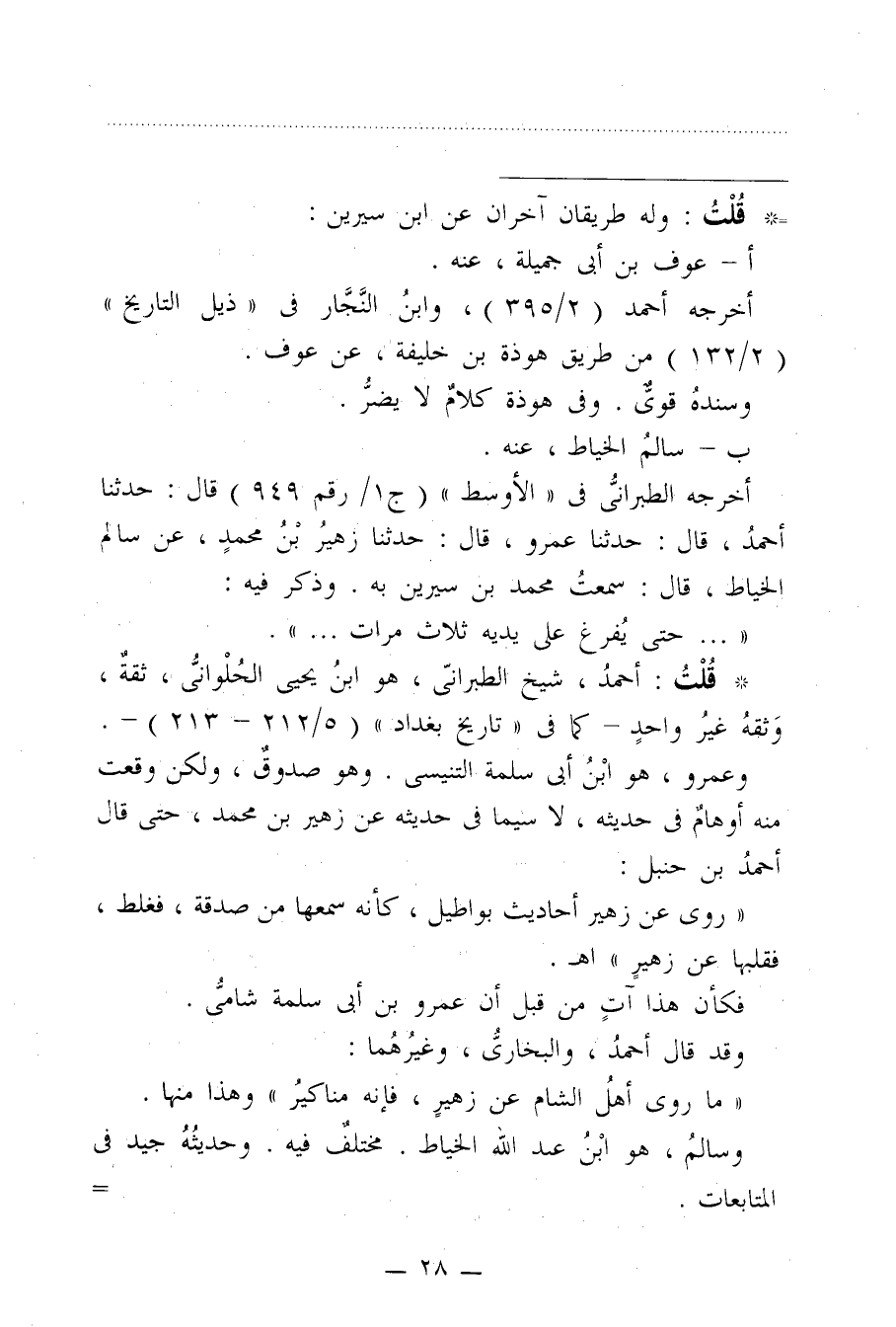 أخرجه الطبرانيُّ في "الأوسط" (ج1 رقم 949) قال: حدثنا أحمدُ، قال: حدثنا عمرو، قال: حدثنا زهيرُ بنُ محمدٍ، عن سالم الخياط، قال: سمعتُ محمد بن سيرين به. وذكر فيه: