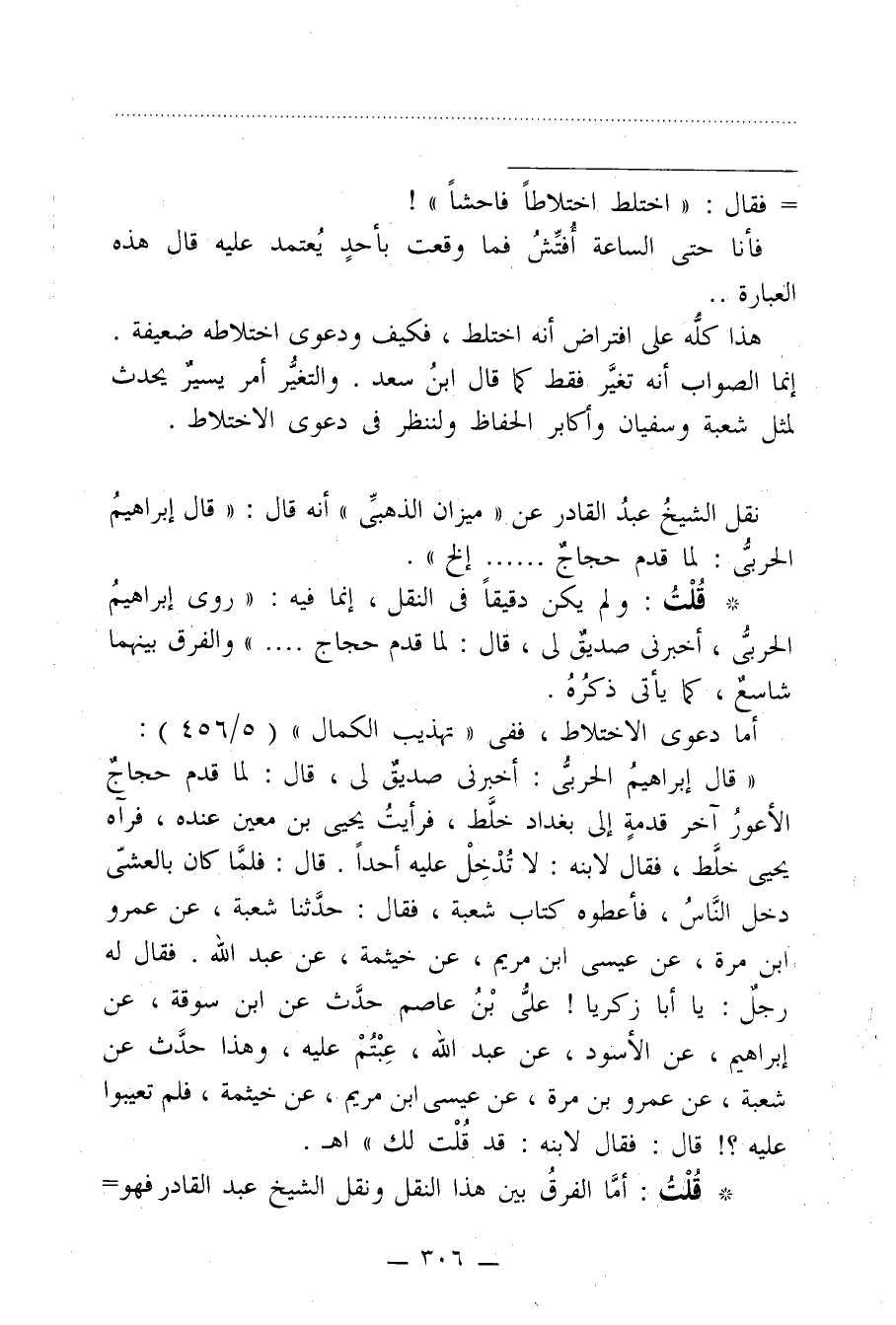 نقل الشيخُ عبدُ القادر عن "ميزان الذهبيِّ" أنه قال: "قال إبراهيمُ الحربيُّ: لما قدم حجاجٌ ...... إلخ".