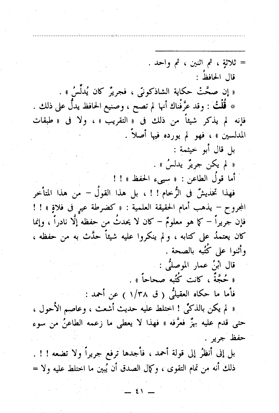 "إن صحَّتْ حكاية الشاذكونيّ، فجريرٌ كان يُدلِّسُ".