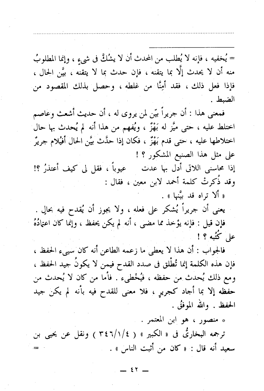 فالجواب: أن هذا لا يعطى ما زعمه الطاعن أنه كان سيىء الحفظ، فإن هذه الكلمة إنما تُطْلق في صدد القدح فيمن لا يكونُ جيد الحفظ، ومع ذلك يُحدث من حفظه، فيُخْطىء. فأما من كان لا يُحدث من حفظه إلا بما أجاد كجريرٍ، فلا معنى للقدح فيه بأنه لم يكن جيد الحفظ. والله الموفقُ.