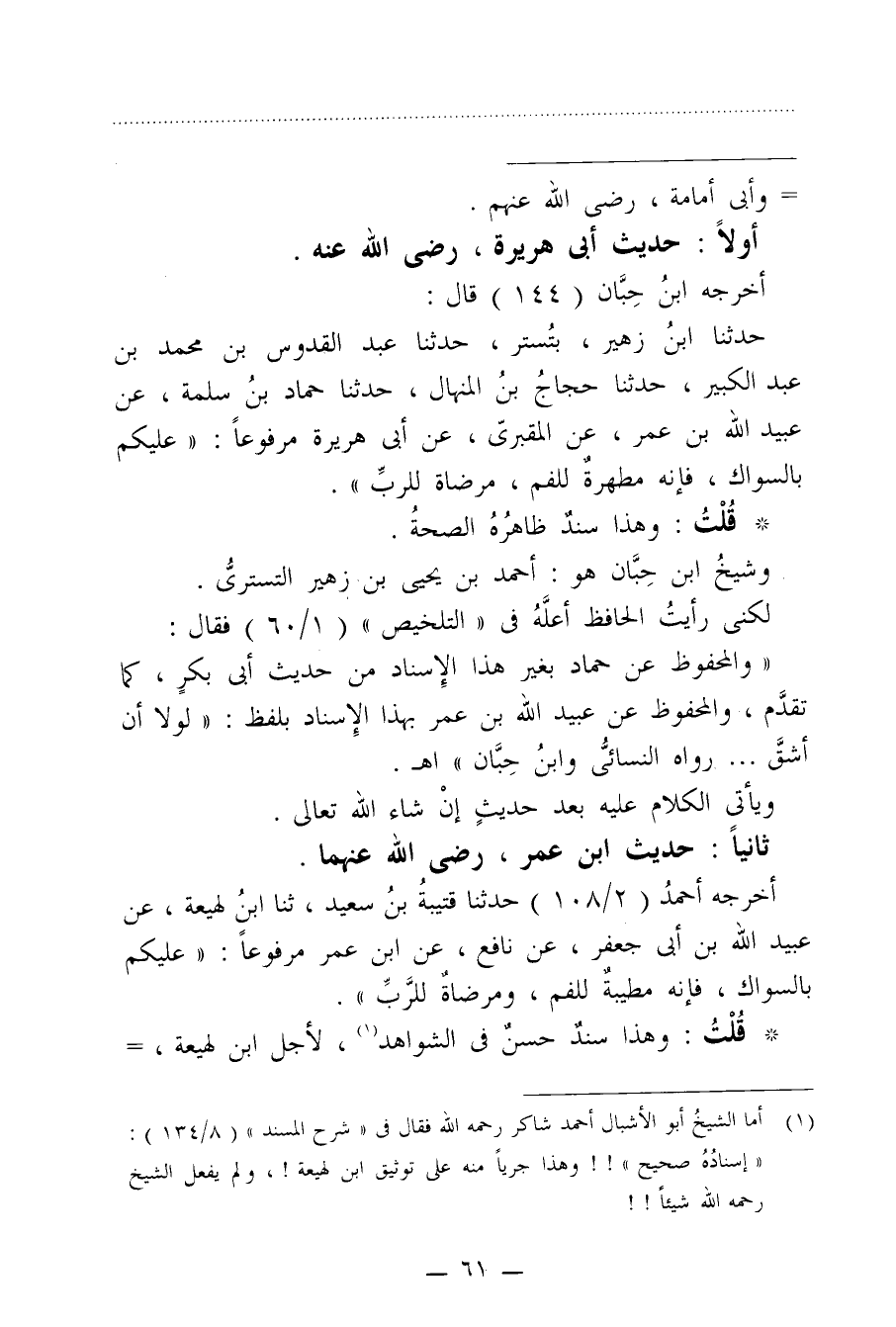 (¬1) أما الشيخُ أبو الأشبال أحمد شاكر رحمه الله فقال في "شرح المسند" (8/ 134): "إسنادُهُ صحيح"!! وهذا جريًا منه على توثيق ابن لهيعة!، ولم يفعل الشيخ رحمه الله شيئًا!!