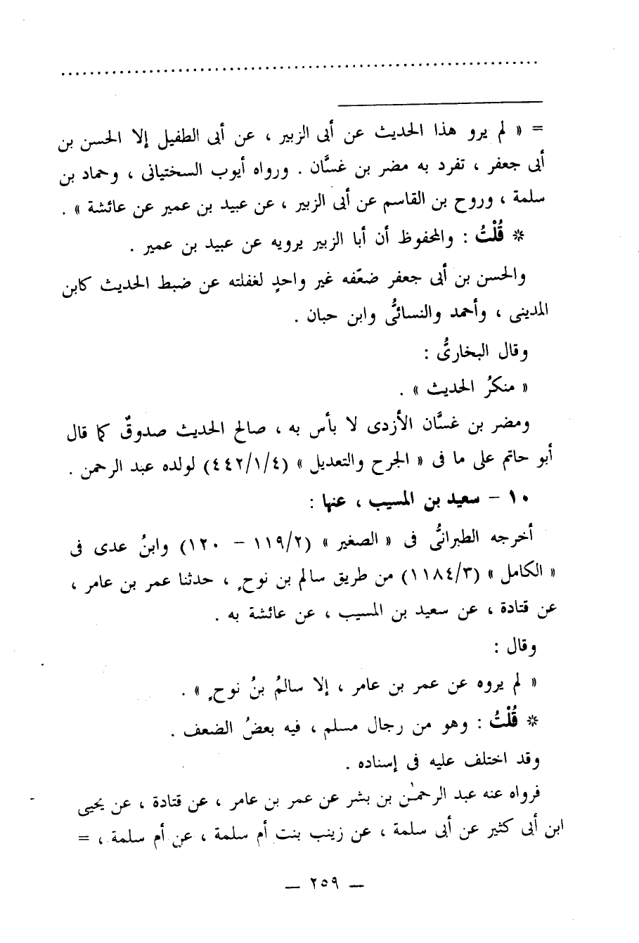 = "لم يرو هذا الحديث عن أبي الزبير، عن أبي الطفيل إلا الحسن بن أبي جعفر، تفرد به مضر بن غسَّان. ورواه أيوب السختيانى، وحماد بن سلمة، وروح بن القاسم عن أبي الزبير، عن عبيد بن عمير عن عائشة".