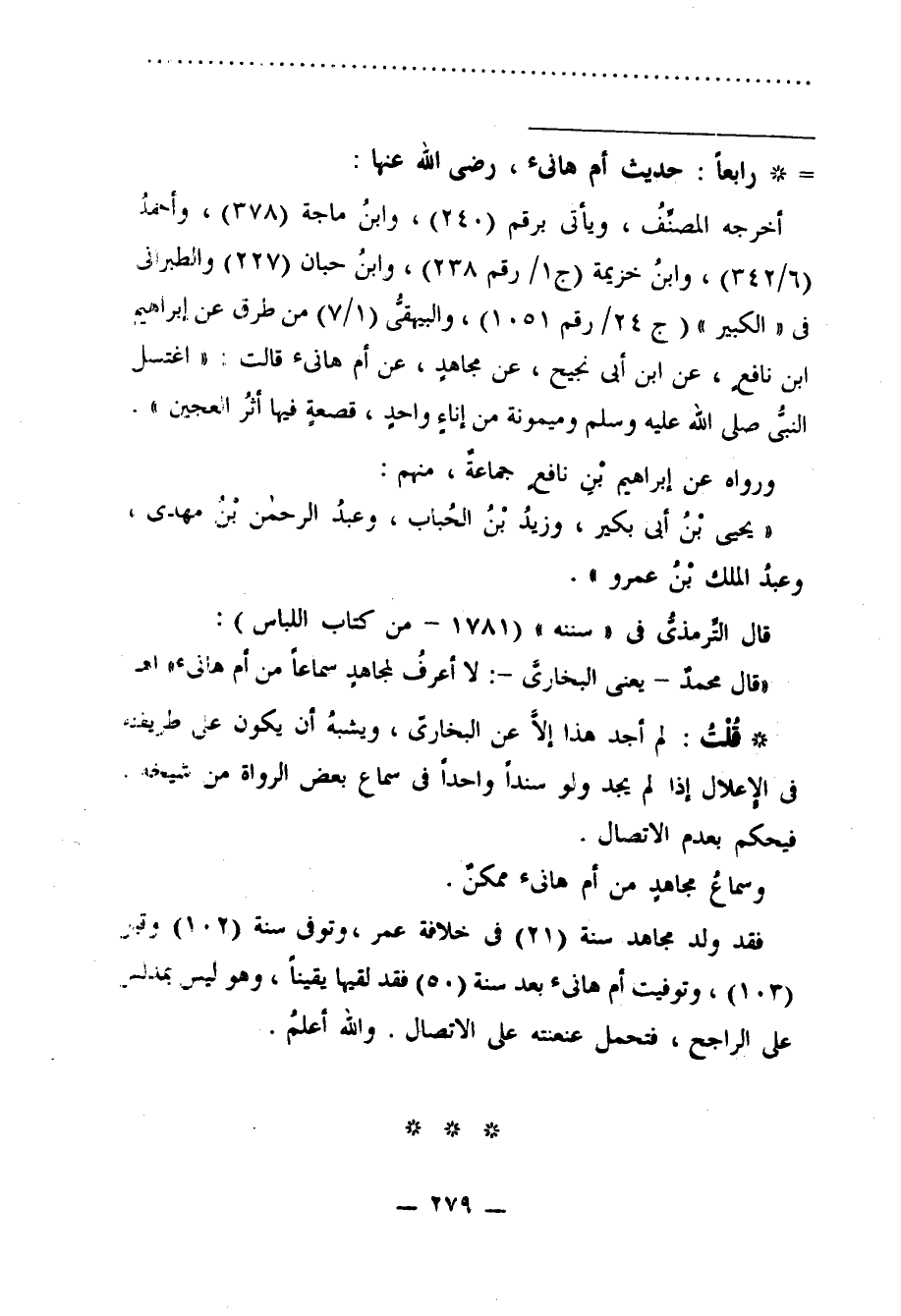 "قال محمدٌ -يعني البخاريَّ -: لا أعرفُ لمجاهدٍ سماعًا من أم هانئ" اهـ.