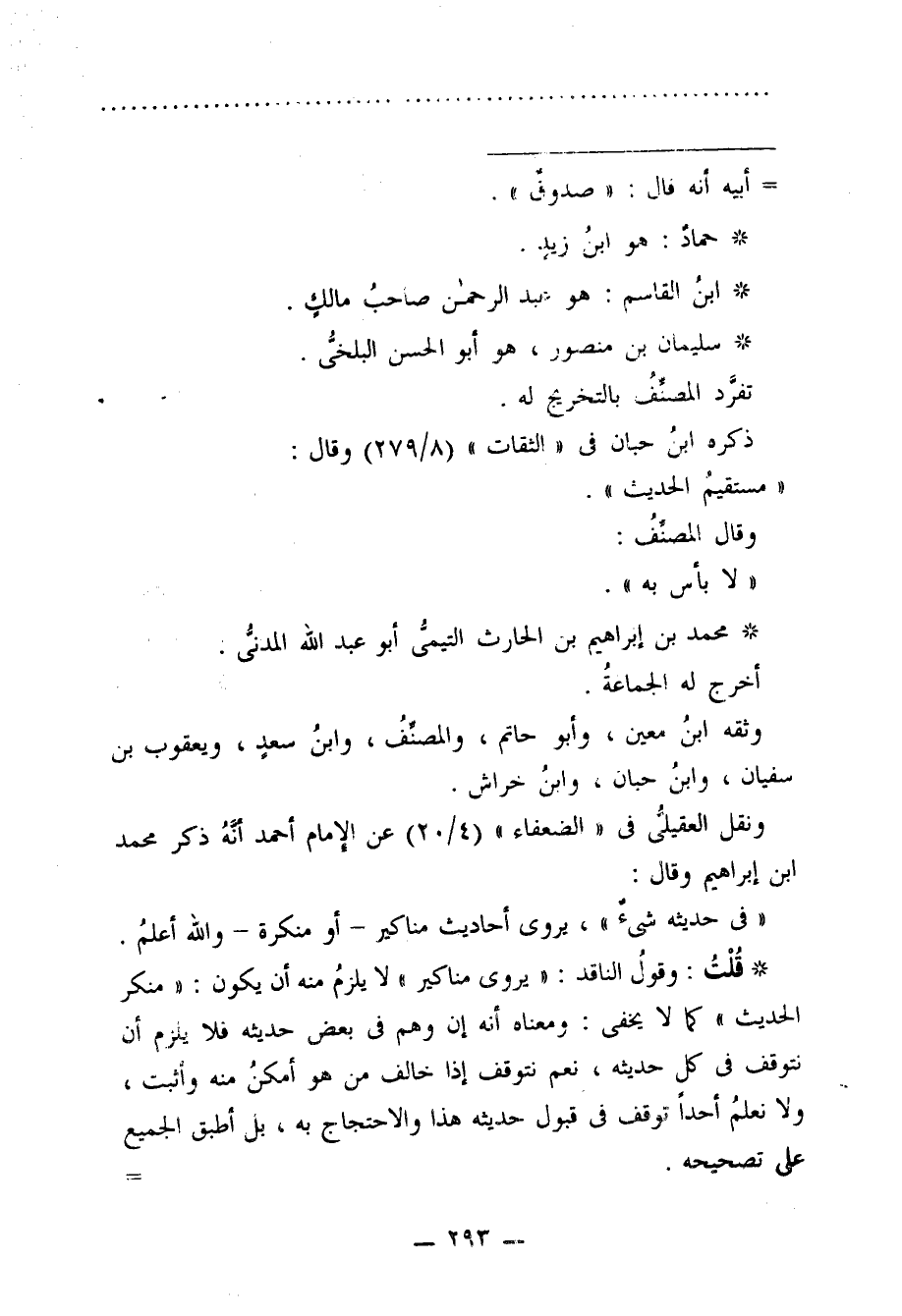 ونقل العقيليُّ في "الضعفاء" (4/ 20) عن الإِمام أحمد أَنَّهُ ذكر محمد ابن إبراهيم وقال: