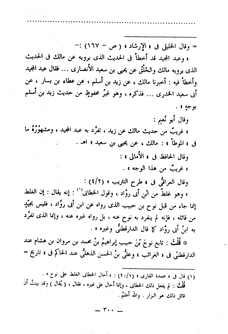 "وعبد المجيد قد أخطأ في الحديث الذي يرويه عن مالك في الحديث الذي يرويه مالك والخلْقُ عن يحيى بن سعيد الأنصارى ... فقال عبد المجيد وأخطأ فيه: أخبرنا مالك، عن زيد بن أسلم، عن عطاء بن يسار، عن أبي سعيد الخدرى ... فذكره، وهو غيرُ محفوظٍ من حديث زيد بن أسلم بوجهٍ".