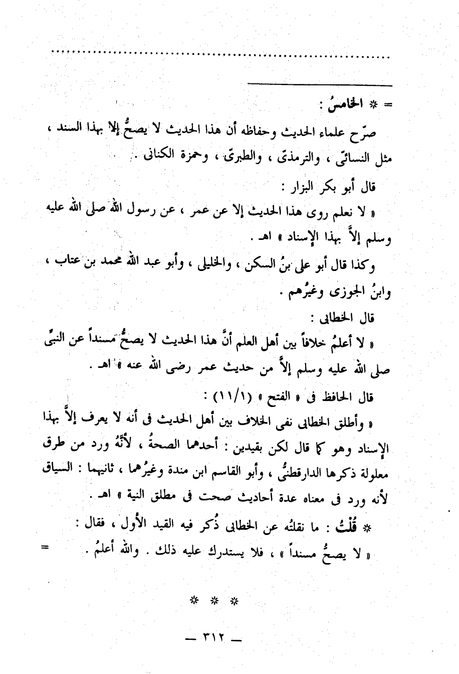 "لا أعلمُ خلافًا بين أهل العلم أنَّ هذا الحديث لا يصحُّ مسندًا عن النبي صلى الله عليه وسلم إلَّا من حديث عمر رضى الله عنه" اهـ.