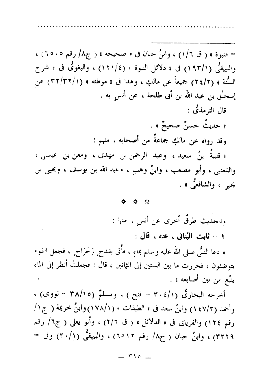 = النبوة" (ق 6/ 1)، وابن حبان في "صحيحه" (ج8/ رقم 6505)، والبيهقيُّ (1/ 193) في "دلائل النبوة" (4/ 121)، والبغويُّ في "شرح السُّنة" (2/ 24) جميعًا عن مالك، وهذا في "موطئه" (1/ 32/32) عن إسحق بن عبد الله بن أبي طلحة، عن أنسٍ به.