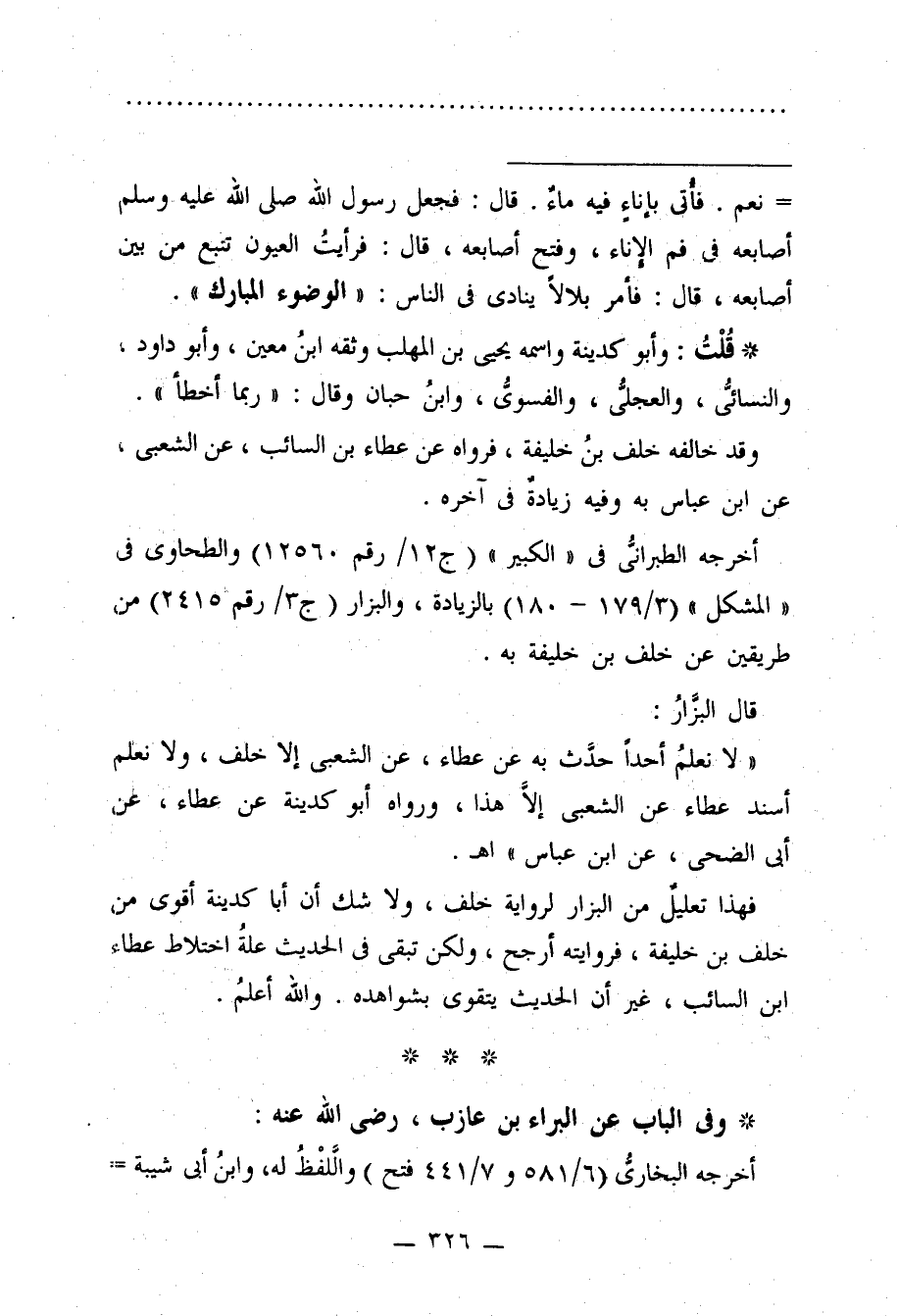 "لا نعلمُ أحدًا حدَّث به عن عطاء، عن الشعبى إلا خلف، ولا نعلم أسند عطاء عن الشعبى إلَّا هذا، ورواه أبو كدينة عن عطاء، عن أبي الضحى، عن ابن عباس" اهـ.
