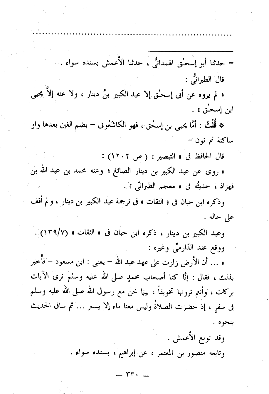 "لم يروه عن أبي إسحق إلا عبد الكبير بنُ دينار، ولا عنه إلَّا يحيى ابن إسحق".