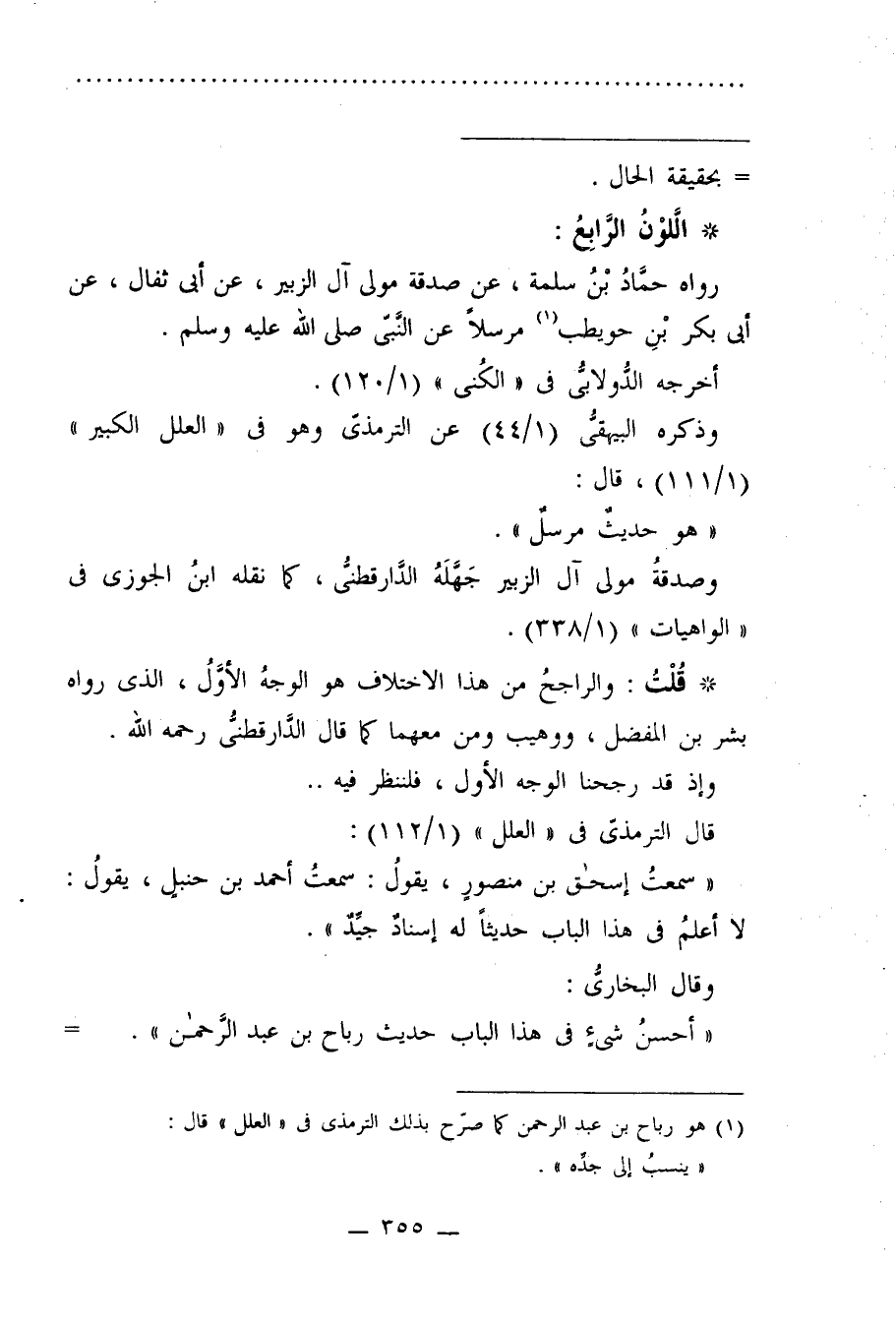 (¬1) هو رباح بن عبد الرحمن كما صرّح بذلك الترمذي في "العلل" قال: "ينسبُ إلي جدِّه".