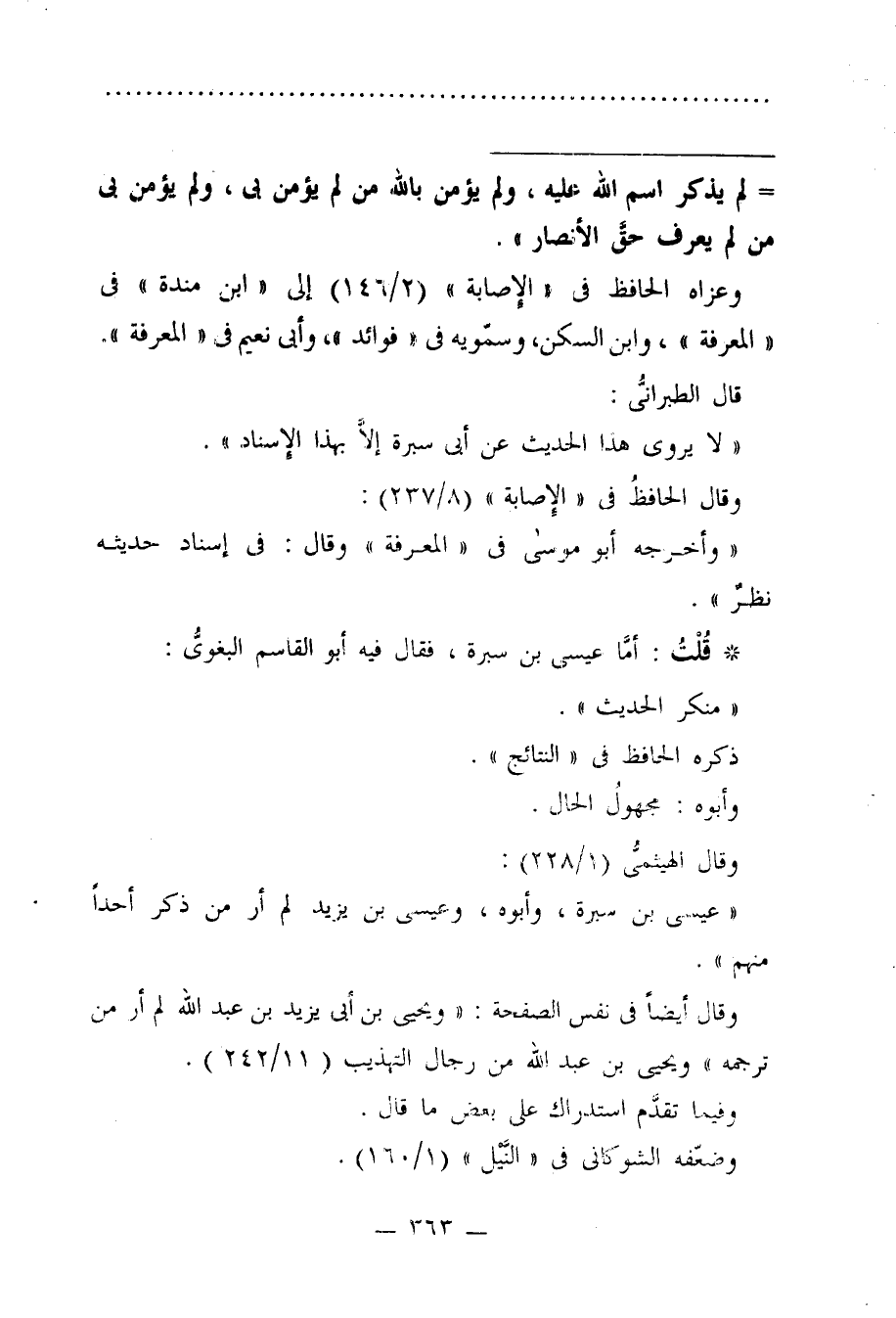= لم يذكر اسم الله عليه، ولم يؤمن بالله من لم يؤمن بي، ولم يؤمن بي من لم يعرف حقَّ الأنصار".