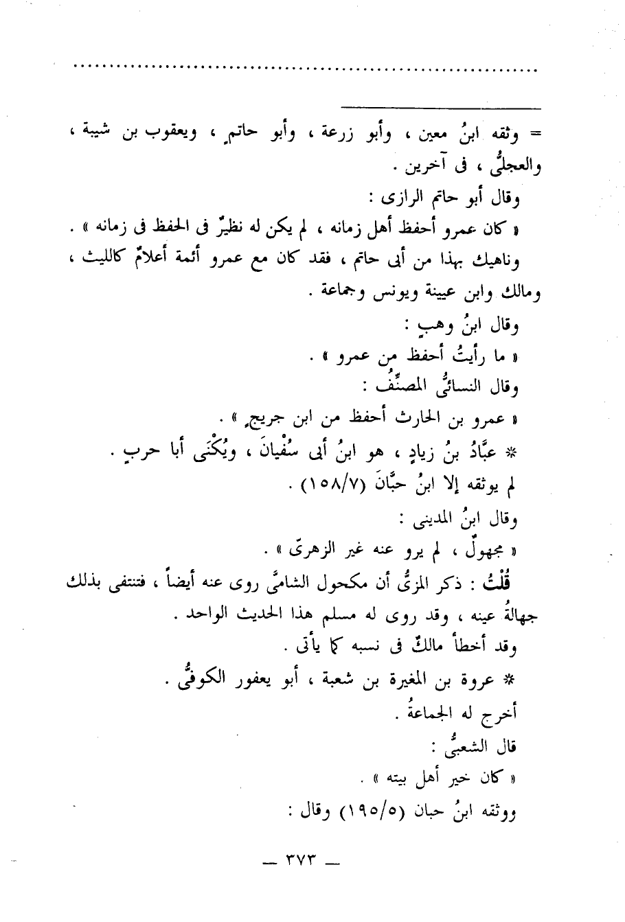 وناهيك بهذا من أبي حاتم، فقد كان مع عمرو أئمة أعلامٌ كالليث، ومالك وابن عيينة ويونس وجماعة.