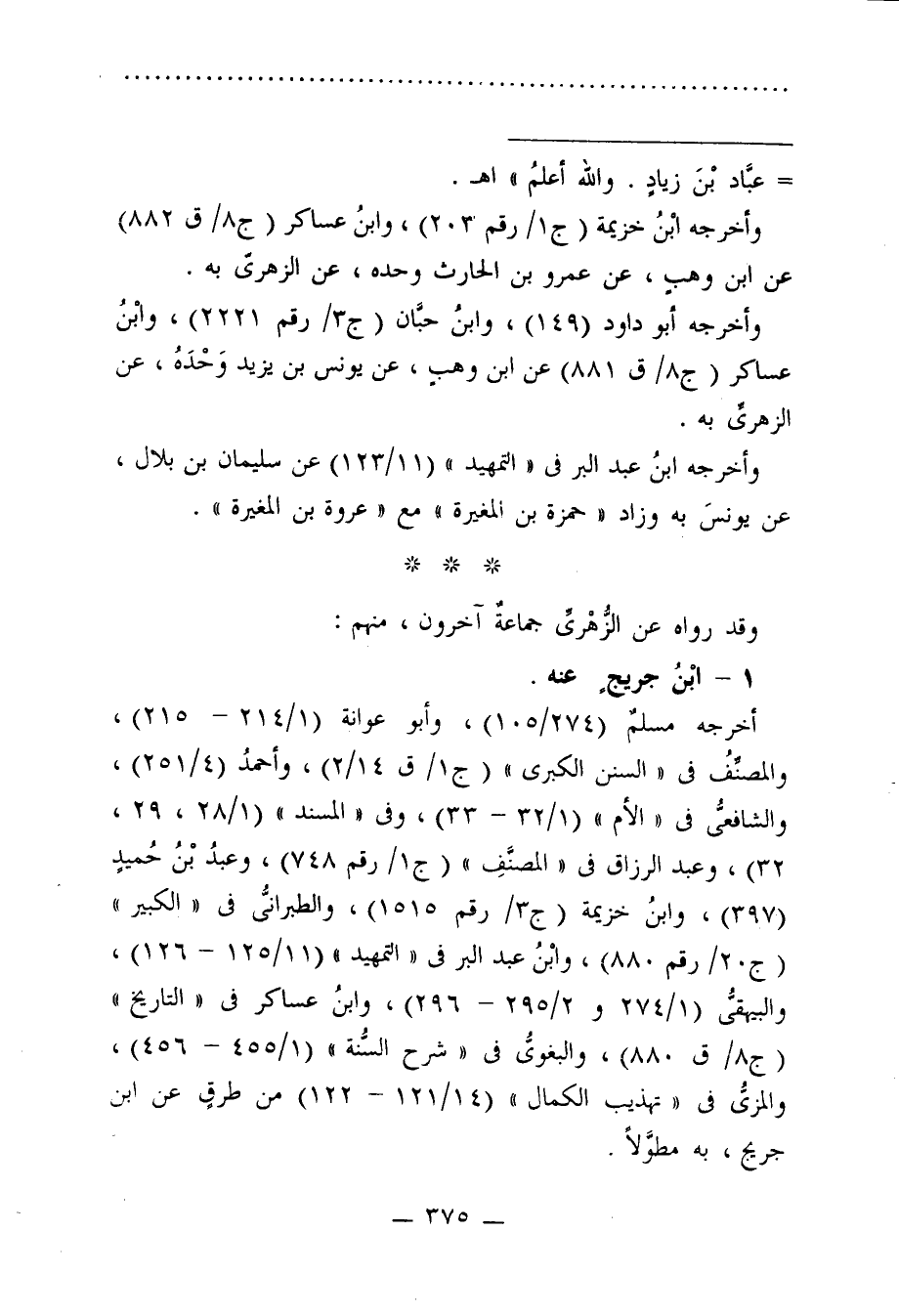 وأخرجه ابْنُ خزيمة (ج1/ رقم 203)، وابنُ عساكر (ج8 / ق 882) عن ابن وهبٍ، عن عمرو بن الحارث وحده، عن الزهرىّ به.