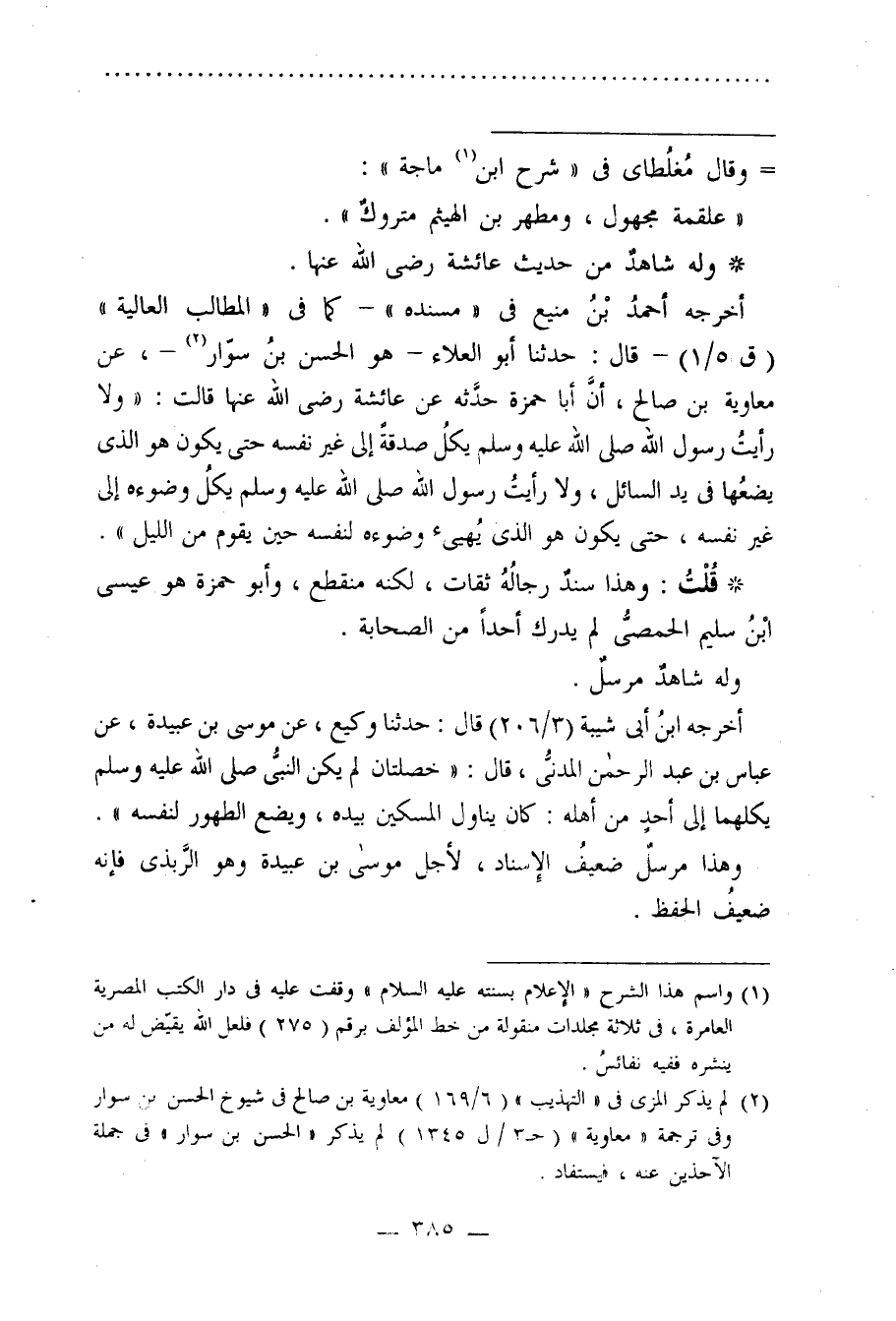 = وقال مُغلُطاي في "شرح ابن (¬1) ماجة":
