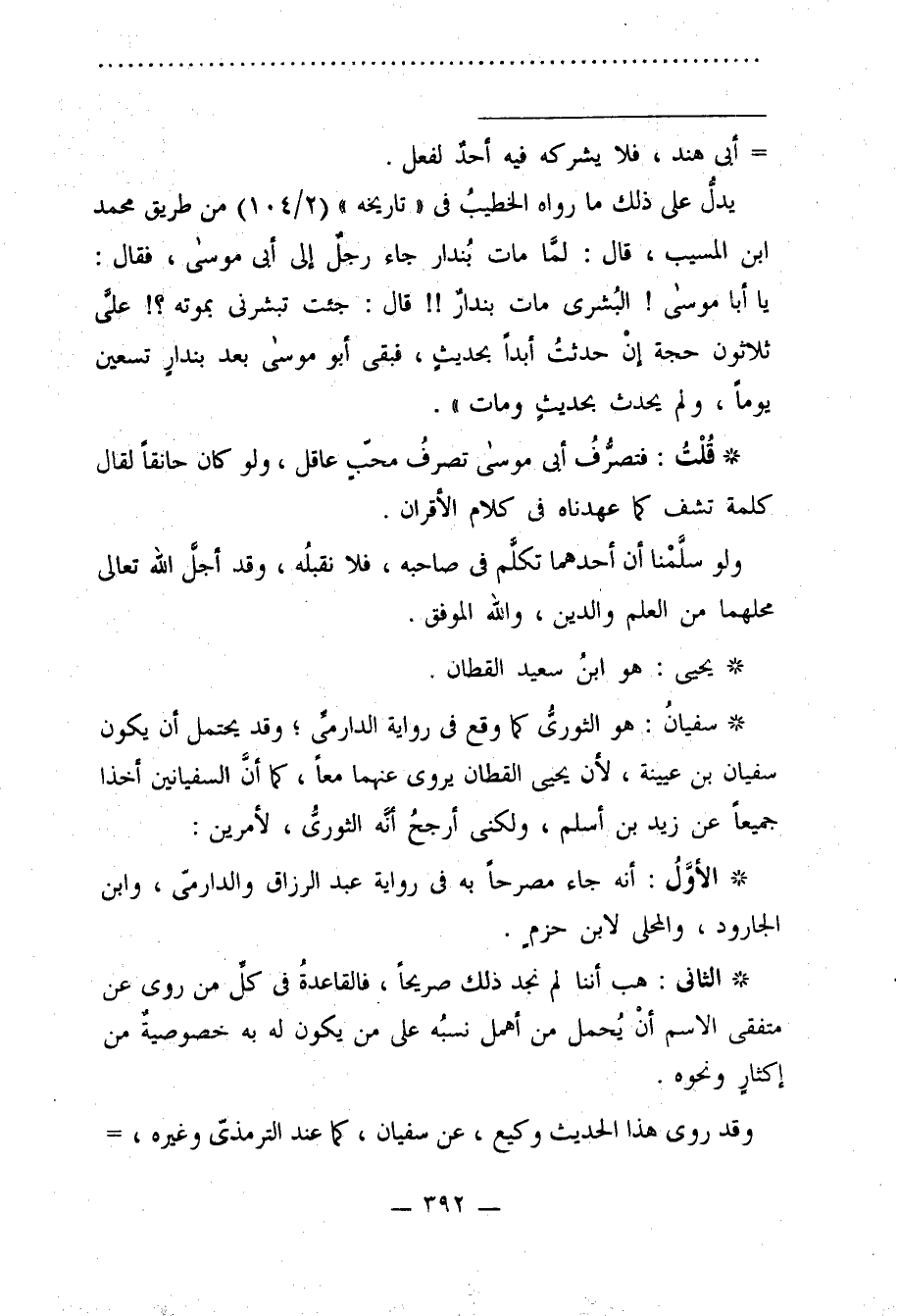* سفيانُ: هو الثوريُّ كما وقع في رواية الدارميِّ؛ وقد يحتمل أن يكون سفيان بن عيينة، لأن يحيى القطان يروى عنهما معًا، أنَّ السفيانين أخذا جميعًا عن زيد بن أسلم، ولكني أرجحُ أنَّه الثوريُّ، لأمرين:
