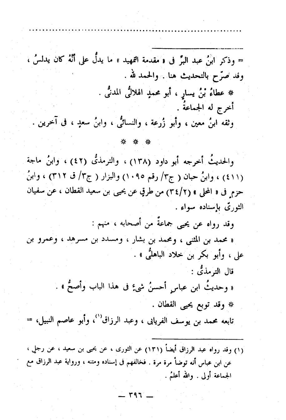 = وذكر ابنُ عبد البرِّ في "مقدمة التمهيد" ما يدلُّ على أنَّهُ كان يدلسُ، وقد صرّح بالتحديث هنا. والحمد لله.
