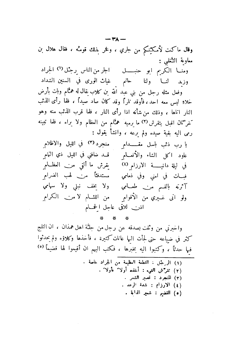 وقال ما كنت لأمكّنكم من جاري، وفخر بذلك قومه، فقال هلال بن معاوية التَّغلبي: