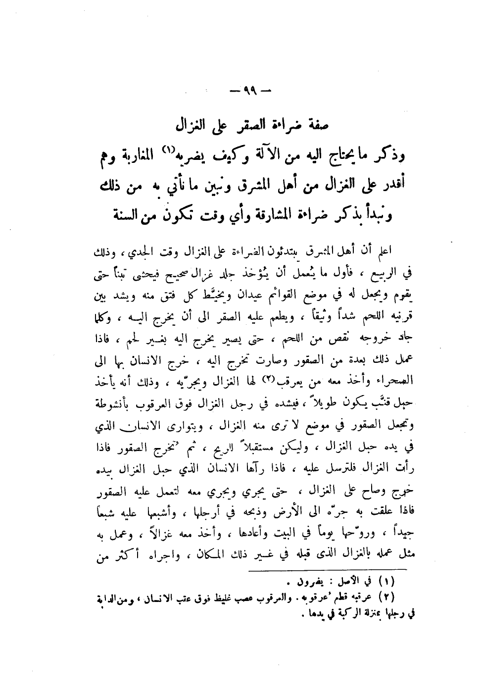 صفة ضراءة الصقر على الغزال وذكر ما يحتاج إليه من الآلة