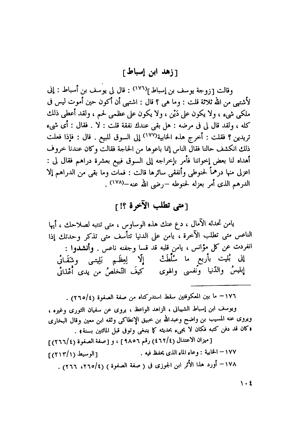 (¬1) هو أبو إسحاق إبراهيم بن أدهم بن منصور. توفي 160هـ من بلخ من أعمال خراسان من أعلام الزهاد. وكان يأكل من عمل يده كالحصاد والعمل بالبساتين.